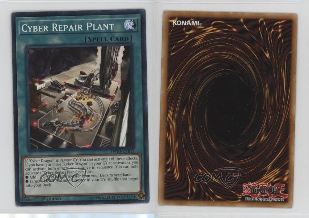 2017 Yu-Gi-Oh! Legendary Dragon Decks - [Base] - 1st Edition #LEDD-ENB12 Cyber Repair Plant COMC Item: 229616569 - YuGiOh Card - Featuring Cyber Repair Plant Search for more: 2017 Yu-Gi-Oh! Legendary Dragon Decks Search for more: 2017 Yu-Gi-Oh! Legendary Dragon Decks - [Base] - 1st Edition View all of our Listings Auctions Buy It Now About Us Located in the beautiful Pacific Northwest, COMC (Check Out My Cards) is the world's largest consignment service for trading card singles. More than 10,000 people have used our consignment service to list over 50 million trading cards. Find out how we can help you consign your items on eBay by contacting us through eBay messaging. COMC -- "The Safe & Easy Way to Buy & Sell" Raw Condition for Modern Cards Unless otherwise noted, raw modern cards are listed in Near Mint-Mint condition or better. A NM-MT card appears to be Mint at first glance, but upon closer inspection, may exhibit some of the following: minor print defects (e.g. roller marks, print line, dimple), minor scratches, slight edge wear, and slight corner wear. Centering is clearly visible in the images provided and does not factor into our condition assessment. Raw Condition for Vintage Cards Unless otherwise noted, raw vintage cards are listed in Excellent condition or better. An EX card may exhibit some of the following: minor rounding of corners, surface wear, print defects, light scratches, and slight edge wear/chipping. Centering is clearly visible in the images provided and does not factor into our condition assessment. Domestic Shipping Combined shipping for multiple items is available. To receive combined shipping, please ensure all desired items are in your eBay shopping cart before proceeding to checkout. eBay limits orders to 40 items per order. We automatically combine multiple orders placed on the same day. If you place multiple orders on the same day, please contact us to request a refund of applicable shipping costs. Signature confirmation may be required on invoices over $400. All cards are protected and shipped securely. International Shipping COMC offers eBay's International Shipping (EIS) for international orders under $2,500* (see country exceptions below). All duties and import fees are paid at checkout; in the rare event that there are additional import fees upon delivery, these are borne by the buyer. EIS packages route through a shipping hub in Erlanger, KY before shipping to their final destination. Please note that EIS does not allow for combined shipments. The shipping rates are determined by eBay and cannot be adjusted. *Maximum sale price exceptions: Colombia, Kuwait ($2,000); Taiwan ($1,539); Chile, Costa Rica, Guatemala, Honduras, Trinidad and Tobago ($1,000); Antigua and Barbuda, Aruba, Belize, Dominica, Grenada, Philippines, Saint Kitts and Nevis, Saint Lucia, Montserrat, Turks and Caicos Islands ($500); Dominican Republic, El Salvador ($200). Please request a shipping quote through eBay messaging for orders that exceed the maximum sale price supported by eBay's International Shipping. You will be responsible for all duties and import fees for international orders shipped outside the EIS. All cards are protected and shipped securely. Payment COMC does not accept offers on our cards through our eBay storefront. COMC utilizes eBay’s managed payments system. If you are experiencing difficulties making a payment, please contact eBay for assistance. Return Policy Returns are only accepted on the rare occasion the item is not as described. If you are making a return, please initiate the return process through eBay so a mailing label can be provided for you. Prior to listing, our expert team carefully assessed this item to represent it accurately. Please review the description and high-definition images prior to purchasing to ensure this item meets your satisfaction. We welcome you to contact us if you have further questions about this item. Trust and Integrity COMC carefully assesses each item consigned to us to prevent fraudulent items from entering the marketplace. If you believe an item offered on COMC may be fraudulent, please contact us with details so we can investigate the issue. Items we determine are outside our supported items policy may be removed. Last Modified: 6/11/2025 7:02:54 PM PDT