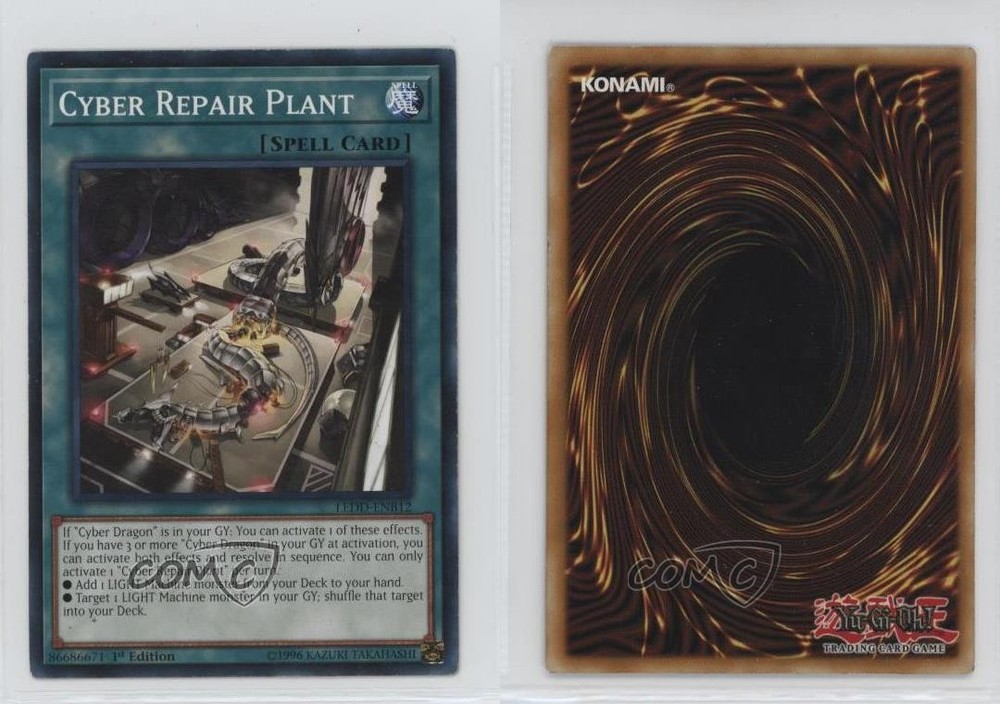 2017 Yu-Gi-Oh! Legendary Dragon Decks - [Base] - 1st Edition #LEDD-ENB12 Cyber Repair Plant COMC Item: 229573472 - YuGiOh Card - Featuring Cyber Repair Plant Search for more: 2017 Yu-Gi-Oh! Legendary Dragon Decks Search for more: 2017 Yu-Gi-Oh! Legendary Dragon Decks - [Base] - 1st Edition View all of our Listings Auctions Buy It Now About Us Located in the beautiful Pacific Northwest, COMC (Check Out My Cards) is the world's largest consignment service for trading card singles. More than 10,000 people have used our consignment service to list over 50 million trading cards. Find out how we can help you consign your items on eBay by contacting us through eBay messaging. COMC -- "The Safe & Easy Way to Buy & Sell" Raw Condition for Modern Cards Unless otherwise noted, raw modern cards are listed in Near Mint-Mint condition or better. A NM-MT card appears to be Mint at first glance, but upon closer inspection, may exhibit some of the following: minor print defects (e.g. roller marks, print line, dimple), minor scratches, slight edge wear, and slight corner wear. Centering is clearly visible in the images provided and does not factor into our condition assessment. Raw Condition for Vintage Cards Unless otherwise noted, raw vintage cards are listed in Excellent condition or better. An EX card may exhibit some of the following: minor rounding of corners, surface wear, print defects, light scratches, and slight edge wear/chipping. Centering is clearly visible in the images provided and does not factor into our condition assessment. Domestic Shipping Combined shipping for multiple items is available. To receive combined shipping, please ensure all desired items are in your eBay shopping cart before proceeding to checkout. eBay limits orders to 40 items per order. We automatically combine multiple orders placed on the same day. If you place multiple orders on the same day, please contact us to request a refund of applicable shipping costs. Signature confirmation may be required on invoices over $400. All cards are protected and shipped securely. International Shipping COMC offers eBay's International Shipping (EIS) for international orders under $2,500* (see country exceptions below). All duties and import fees are paid at checkout; in the rare event that there are additional import fees upon delivery, these are borne by the buyer. EIS packages route through a shipping hub in Erlanger, KY before shipping to their final destination. Please note that EIS does not allow for combined shipments. The shipping rates are determined by eBay and cannot be adjusted. *Maximum sale price exceptions: Colombia, Kuwait ($2,000); Taiwan ($1,539); Chile, Costa Rica, Guatemala, Honduras, Trinidad and Tobago ($1,000); Antigua and Barbuda, Aruba, Belize, Dominica, Grenada, Philippines, Saint Kitts and Nevis, Saint Lucia, Montserrat, Turks and Caicos Islands ($500); Dominican Republic, El Salvador ($200). Please request a shipping quote through eBay messaging for orders that exceed the maximum sale price supported by eBay's International Shipping. You will be responsible for all duties and import fees for international orders shipped outside the EIS. All cards are protected and shipped securely. Payment COMC does not accept offers on our cards through our eBay storefront. COMC utilizes eBay’s managed payments system. If you are experiencing difficulties making a payment, please contact eBay for assistance. Return Policy Returns are only accepted on the rare occasion the item is not as described. If you are making a return, please initiate the return process through eBay so a mailing label can be provided for you. Prior to listing, our expert team carefully assessed this item to represent it accurately. Please review the description and high-definition images prior to purchasing to ensure this item meets your satisfaction. We welcome you to contact us if you have further questions about this item. Trust and Integrity COMC carefully assesses each item consigned to us to prevent fraudulent items from entering the marketplace. If you believe an item offered on COMC may be fraudulent, please contact us with details so we can investigate the issue. Items we determine are outside our supported items policy may be removed. Last Modified: 6/11/2025 7:02:48 PM PDT