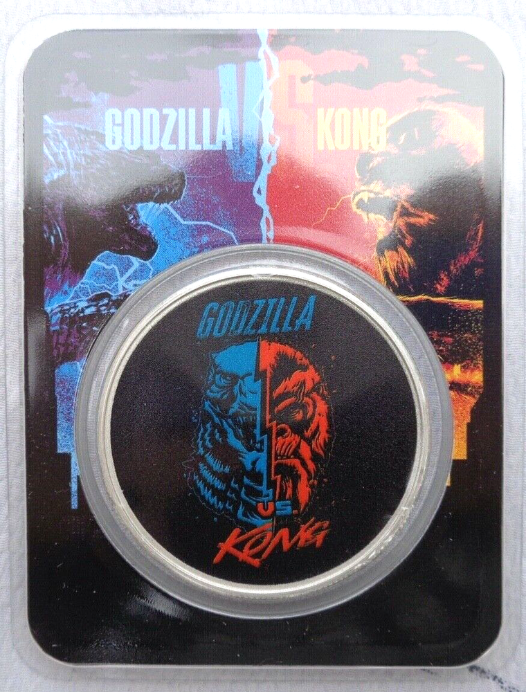This is a one troy ounce .999 fine silver coin. This 2021 Niue GODZILLA vs. KONG coin is a limited edition coin from the Godzilla Vs. Kong Movie. The coins are uncirculated and colorized in the Godzilla vs. Kong card shown. Pictures are typical of the coin you will receive. Directed by Adam Wingard, legends collide in Godzilla Vs. Kong as these colossal adversaries meet in a spectacular battle for the ages. Godzilla vs. Kong is a sequel to Godzilla: King of the Monsters and Kong: Skull Island . Godzilla vs. Kong marks the 36th film in the Godzilla franchise and the 12th film in the King Kong franchise. After being delayed due to the C-19 pandemic, Godzilla vs. Kong has a theatrical release of March 31, 2021, where it will be available in theaters and on HBO Max. You know you need a couple of these in your collection! Your satisfaction is guaranteed! FREE SHIPPING IN THE U.S. Payment: Buy-it-now items require instant payment. International Shipping: All items will be shipped via eBay International Standard Delivery Service. To combine international shipping cost you must purchase multiple items in one cart. I can no longer refund for combined shipping on multiple purchases not in one cart. Refund policy: Return any item within 30 days for a full refund. You satisfaction is my highest goal. Look at my feedback. I want to be able to trust the service and quality from 1believerinchrist! God bless America.