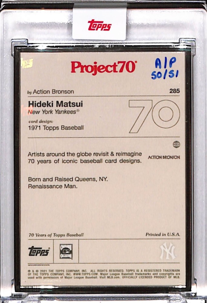 Topps Project 70 (P70) #285 - SILVER FRAME - A/P ARTIST PROOF! Hideki Matsui Serial Numbered 50/51 TOPPS FACTORY SEALED GODZILLA! Rare and highly collectible Topps Project 70 card featuring the iconic Hideki Matsui , designed by the ever-popular artist Action Bronson ! This Artist Proof (A/P) edition comes with a stunning silver frame and is serial numbered 50/51 , making it an ultra-limited release. Short Print Card : This is a short print variant , adding rarity and value to your collection. Factory Sealed : The card remains in its original Topps factory-sealed packaging , ensuring authenticity and condition. Collectible Investment : These Artist Proofs are becoming increasingly rare on the secondary market, with collectors locking them away for the long term. Don't miss out—this may be your last chance to grab one! Item Condition : Brand new, factory sealed in mint condition. Shipping : This item is in-hand and will ship promptly within two business days after payment is received. You can rest assured that your card will be safely packaged and delivered. Why Buy from Wheeler Collection? If you’re looking for the best, look no further than Wheeler Collection ! We specialize in high-end singles and sealed products , and more exciting items will be listed soon. Be on the lookout! Grab this rare gem while you can—once they're gone, they're gone! KA