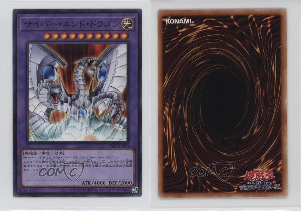 2021 Yu-Gi-Oh! Prismatic Art Collection - [Base] - Japanese #PAC1-JP013 SR - Cyber End Dragon COMC Item: 251493369 - YuGiOh Card - Featuring Cyber End Dragon Search for more: 2021 Yu-Gi-Oh! Prismatic Art Collection Search for more: 2021 Yu-Gi-Oh! Prismatic Art Collection - [Base] - Japanese View all of our Listings Auctions Buy It Now About Us Located in the beautiful Pacific Northwest, COMC (Check Out My Cards) is the world's largest consignment service for trading card singles. More than 10,000 people have used our consignment service to list over 50 million trading cards. Find out how we can help you consign your items on eBay by contacting us through eBay messaging. COMC -- "The Safe & Easy Way to Buy & Sell" Raw Condition for Modern Cards Unless otherwise noted, raw modern cards are listed in Near Mint-Mint condition or better. A NM-MT card appears to be Mint at first glance, but upon closer inspection, may exhibit some of the following: minor print defects (e.g. roller marks, print line, dimple), minor scratches, slight edge wear, and slight corner wear. Centering is clearly visible in the images provided and does not factor into our condition assessment. Raw Condition for Vintage Cards Unless otherwise noted, raw vintage cards are listed in Excellent condition or better. An EX card may exhibit some of the following: minor rounding of corners, surface wear, print defects, light scratches, and slight edge wear/chipping. Centering is clearly visible in the images provided and does not factor into our condition assessment. Domestic Shipping Combined shipping for multiple items is available. To receive combined shipping, please ensure all desired items are in your eBay shopping cart before proceeding to checkout. eBay limits orders to 40 items per order. We automatically combine multiple orders placed on the same day. If you place multiple orders on the same day, please contact us to request a refund of applicable shipping costs. Signature confirmation may be required on invoices over $400. All cards are protected and shipped securely. International Shipping COMC offers eBay's International Shipping (EIS) for international orders under $2,500* (see country exceptions below). All duties and import fees are paid at checkout; in the rare event that there are additional import fees upon delivery, these are borne by the buyer. EIS packages route through a shipping hub in Erlanger, KY before shipping to their final destination. Please note that EIS does not allow for combined shipments. The shipping rates are determined by eBay and cannot be adjusted. *Maximum sale price exceptions: Colombia, Kuwait ($2,000); Taiwan ($1,539); Chile, Costa Rica, Guatemala, Honduras, Trinidad and Tobago ($1,000); Antigua and Barbuda, Aruba, Belize, Dominica, Grenada, Philippines, Saint Kitts and Nevis, Saint Lucia, Montserrat, Turks and Caicos Islands ($500); Dominican Republic, El Salvador ($200). Please request a shipping quote through eBay messaging for orders that exceed the maximum sale price supported by eBay's International Shipping. You will be responsible for all duties and import fees for international orders shipped outside the EIS. All cards are protected and shipped securely. Payment COMC does not accept offers on our cards through our eBay storefront. COMC utilizes eBay’s managed payments system. If you are experiencing difficulties making a payment, please contact eBay for assistance. Return Policy Returns are only accepted on the rare occasion the item is not as described. If you are making a return, please initiate the return process through eBay so a mailing label can be provided for you. Prior to listing, our expert team carefully assessed this item to represent it accurately. Please review the description and high-definition images prior to purchasing to ensure this item meets your satisfaction. We welcome you to contact us if you have further questions about this item. Trust and Integrity COMC carefully assesses each item consigned to us to prevent fraudulent items from entering the marketplace. If you believe an item offered on COMC may be fraudulent, please contact us with details so we can investigate the issue. Items we determine are outside our supported items policy may be removed. Last Modified: 7/3/2025 10:51:53 PM PDT