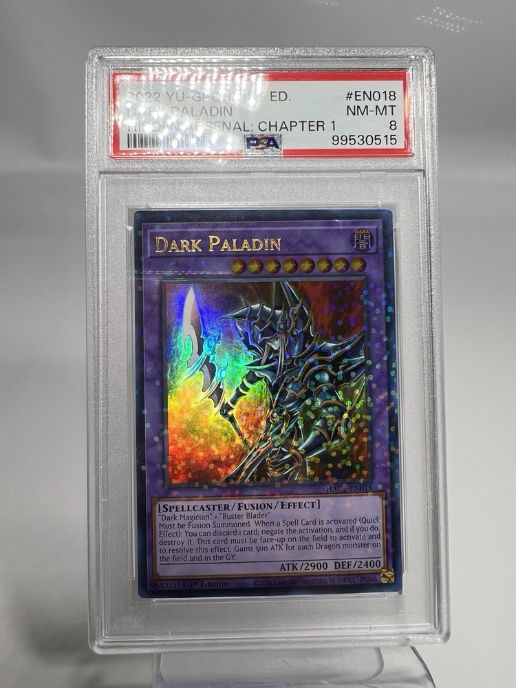 Experience the thrill of strategic duels with the 2022 Yu-Gi-Oh! Hidden Arsenal Chapter 1 #EN018 Dark Paladin card. As a pivotal addition to any Yu-Gi-Oh! collection, this non-sport trading card brings a touch of nostalgia and newfound power to your deck. Whether you're a seasoned collector or a dedicated player, Dark Paladin offers a blend of classic appeal and contemporary performance. Crafted for those who appreciate the intricacies of the Yu-Gi-Oh! franchise, this trading card is a must-have for enthusiasts seeking to enhance their gameplay or preserve a piece of the expansive lore. Manufactured in 2022, it represents a recent chapter in the ongoing saga of magical battles and deck refinement. Add this card to your arsenal and feel the might of Dark Paladin at your next duel.