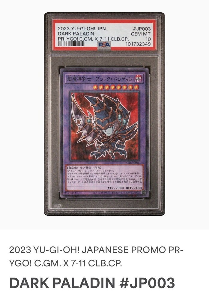 2023 YU-GI-OH! JPN PROMO #JP003 DARK PALADIN PSA Gem Mint 10. Condition is Graded. Shipped with USPS Ground Advantage.