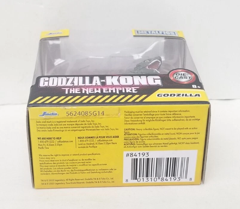 (2024) Jada Toys 2.50" Die-Cast Godzilla X Kong: The New Empire "Godzilla" Metalfigs Figurine (NIB) : The item is in ( PLEASE READ ) brand new never been removed from the box packaging w/ minor wear present from shelf life / store employees handling (SEE PICTURES FOR CONDITION ISSUES) . Measurements : (box): 3.25 inches in H, 3.25 inches in L & 2 inches in D. The figurine stands at about 2.50 inches in height . Weighs about half a pound altogether. Please feel free to ask any questions. More pictures available upon request!