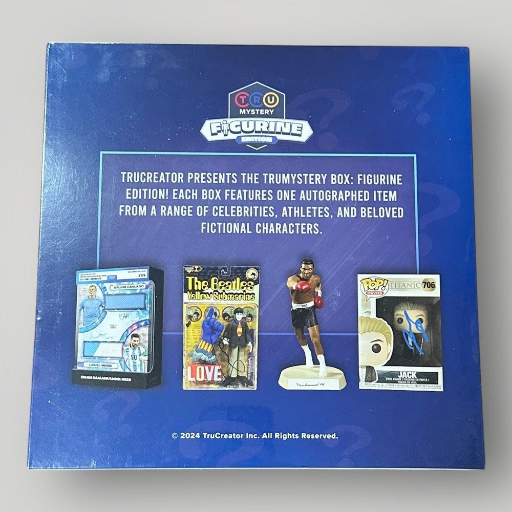 2024 TruMystery Signed Figurine Edition Box Configuration: 1 figurine per box. PRODUCT HIGHLIGHTS - All signed figures will be authenticated by the Major Authentication Sources including: PSA, JSA, and BAS! - This product ONLY features the biggest/best Athletes, Celebrities, Musicians, Actors, and other amazing subjects who have been featured on Figurines. - Introducing our Jumbo 5x7 Trading Cards with Displayable packaging that will be randomly inserted throughout the boxes featuring our top Athletes, Musicians, and Celebrities! Box Break: - 1 Autographed Figurine