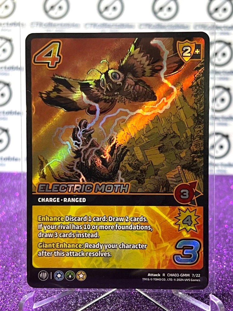 2024 UNIVERSUS GODZILLA ELECTRIC MOTH # ATTACK R CHA03-GMM 7/22 RARE FOIL UVS GAMES TRADING CARD THIS CARD IS IN EXCELLENT CONDITION PACKAGED SAFELY WITH TOP LOADER PLEASE PREFER TO PHOTO You are purchasing the item within the title & Photo, cards are all in straight out of the pack excellent/mint condition (unless stated otherwise) all cards are sent in penny sleeve, toploader We Also have Plenty of Cards and other Kollectables listed on our online website! Check it out!
