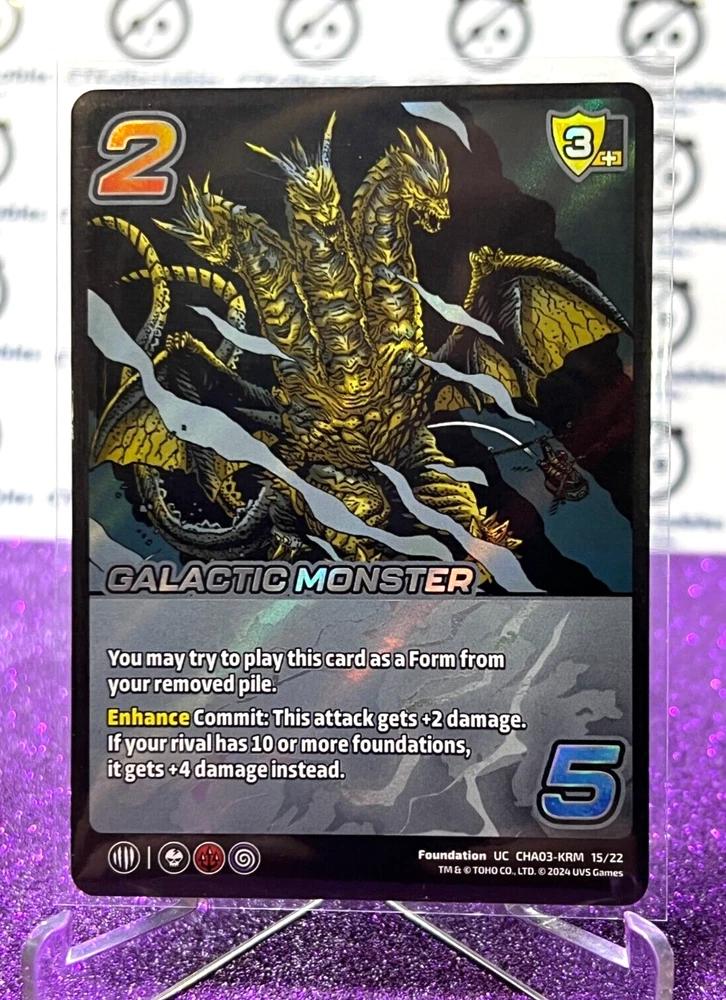2024 UNIVERSUS GODZILLA GALACTIC MONSTER # FOUNDATION UC CHA03-KRM 15/22 UNCOMMON FOIL UVS GAMES TRADING CARD THIS CARD IS IN EXCELLENT CONDITION PACKAGED SAFELY WITH TOP LOADER PLEASE PREFER TO PHOTO You are purchasing the item within the title & Photo, cards are all in straight out of the pack excellent/mint condition (unless stated otherwise) all cards are sent in penny sleeve, toploader We Also have Plenty of Cards and other Kollectables listed on our online website! Check it out!