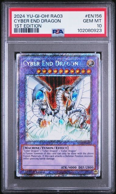 The product is a rare 1st Edition Yu-Gi-Oh! TCG card featuring Seto Kaiba's Cyber End Dragon. It has been professionally graded as a perfect 10 by PSA and is part of the Quarter Century Bonanza series released in 2024. The card is in English and manufactured by Konami.