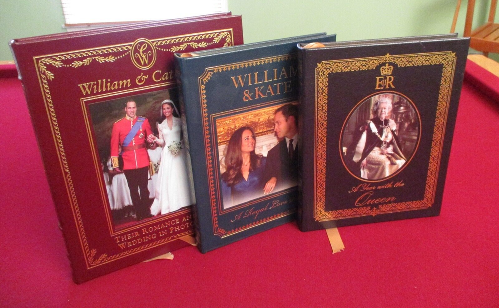 Lot of three large Easton Press leather bound books on the royals. These are all in very good condition. Gold gilt page edges, and gold embossing. Profusely illustrated. There is an unused Easton Press bookplate affixed to the front moire page of each book. Free media mail shipping.