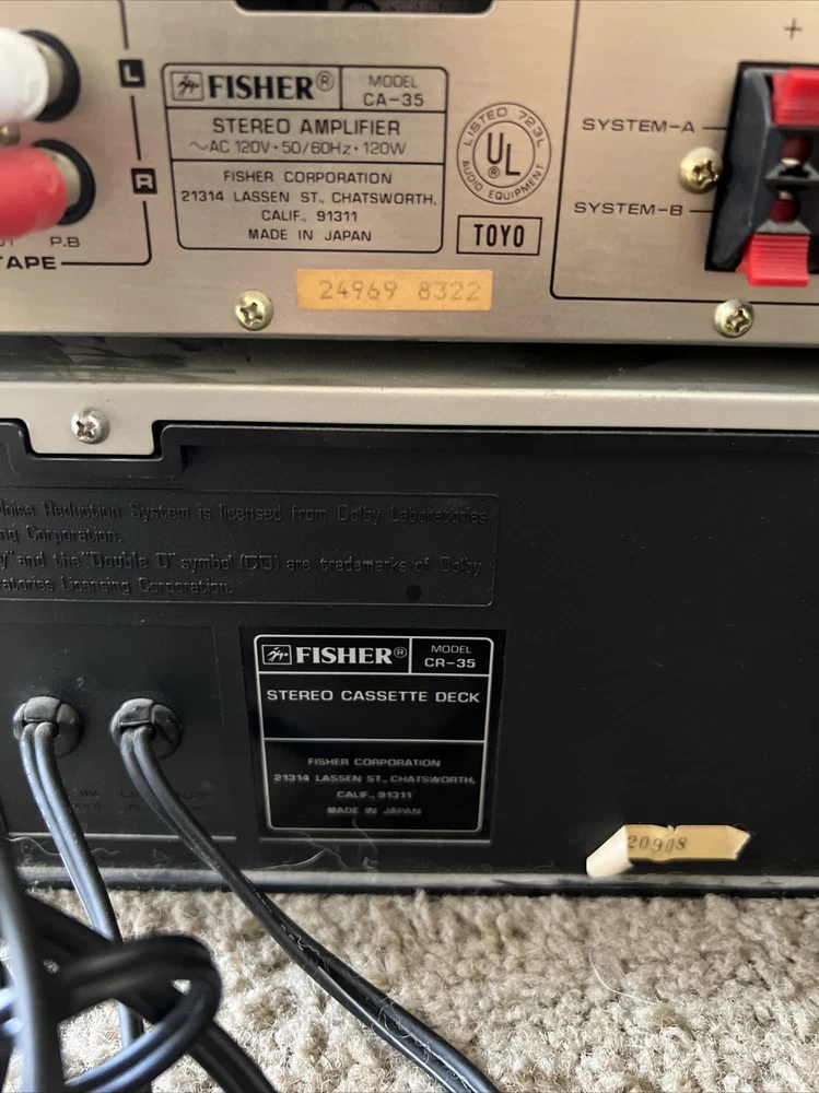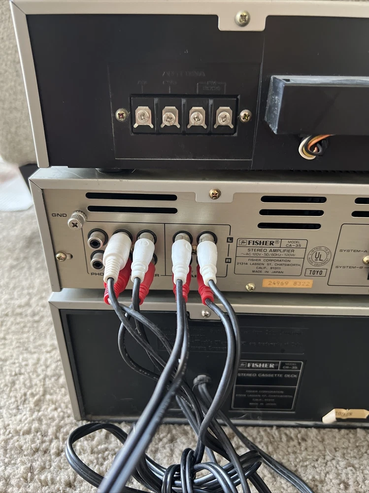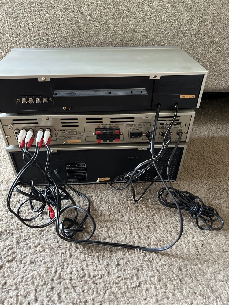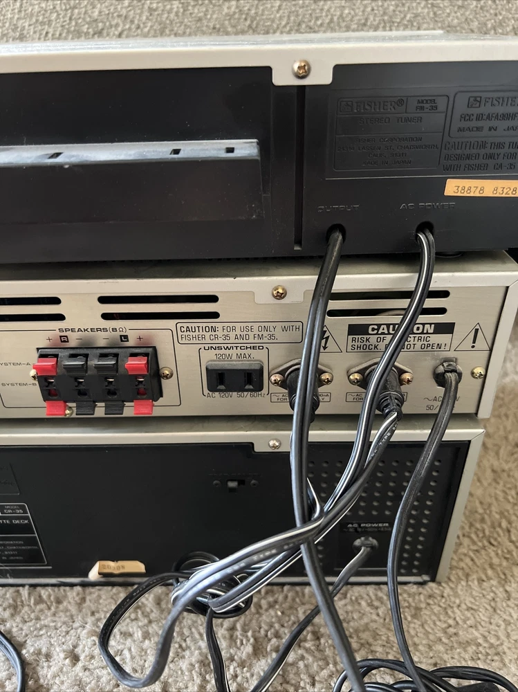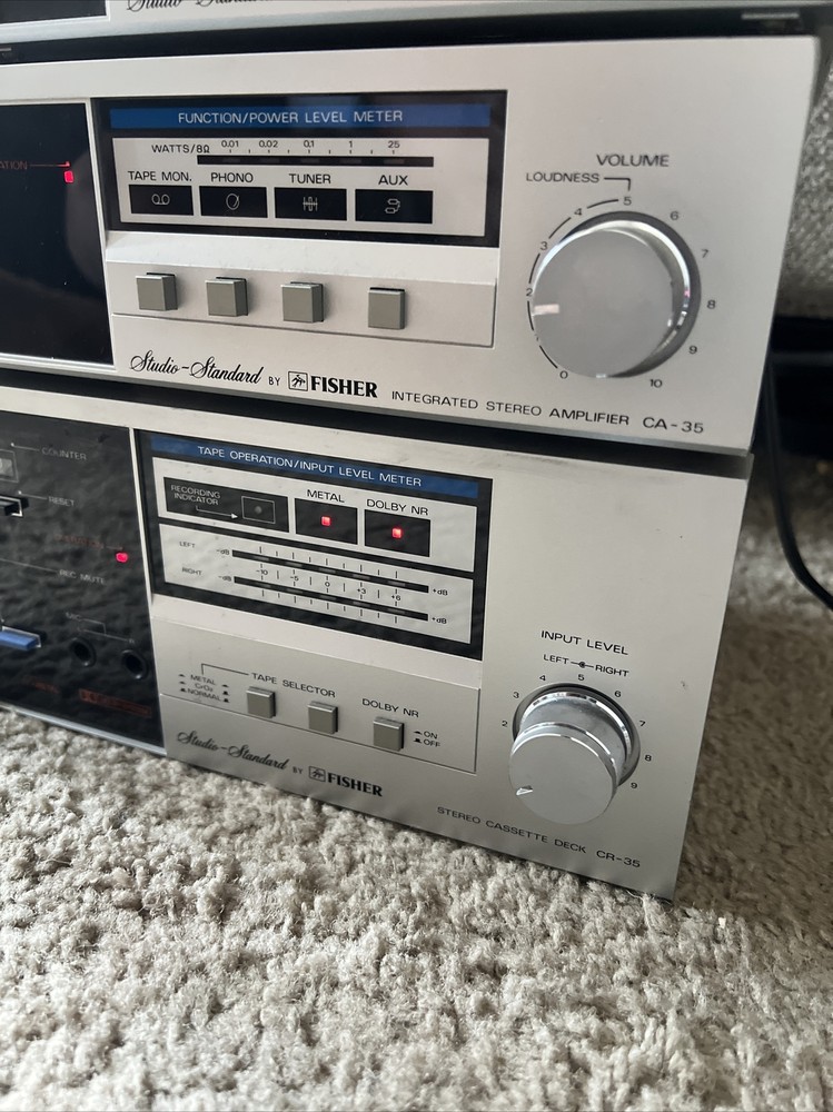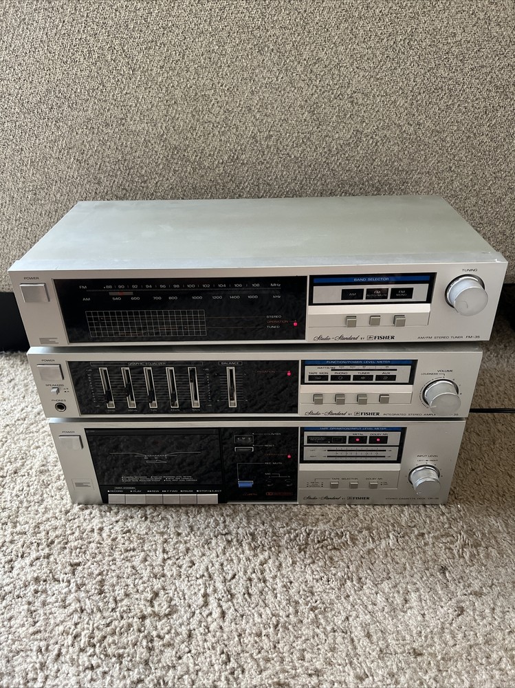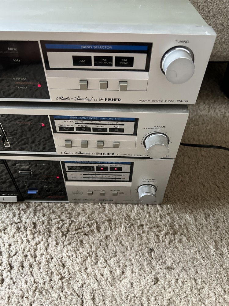 3 Fisher Studio Standard FM-35 CA-35 CR-35 Integrated Stereo Tuner Amplifier and cassette deck with wires included. The items light up when powered on and all buttons move freely and without issue. This is the furthest extent of the testing. The original owner stated that these items work but this hasn’t been tested by me so it isn’t guaranteed. For additional questions or pictures please reach out.