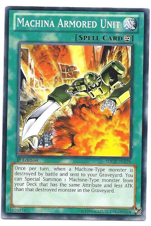 PICTURE IN LISTING IS ONLY FOR EXAMPLE ,it is a stock picture. Item condition is listed as "Used" because Ebay requires UPC codes for any item that is listed as "New", and trading cards do not have UPC Codes, so they must be listed as "Used". Card condition is listed in the listing title and in the item description. Rarity and edition of the card are described in the listing title and description. From this listing you will receive 3 card(s) for each purchase Description Set : Cyber Dragon Revolution Name : Machina Armored Unit Number : SDCR-EN028 Rarity : Common Condition : Near Mint Language : English We get your package in the mail quickly, please rate our service based on how quickly we gave your package to the post office. Not on how long it took the post office to deliver it. As we all know we cannot control that. If you have concerns about our shipping service, please send us a message and we will gladly talk to you about it and explain it. Domestic Buyers: Domestic orders within the United States are shipped for one flat rate, no cost for additional cards purchased on the same invoice. International Buyers: International orders are shipped First Class Mail International with and an additional item fee of $0.50. Orders over $50.00 USD require additional postage fees because of shipping method changes. SPECIAL REQUIREMENTS For International Orders Any International order greater than $100.00 USD will require shipment by : USPS Global Express Mail This is a flat rate service and you may ship cards totaling up to 16 ounces, the weight limit on the package. The following International Countries can request USPS First Class Mail International Package as the shipment method for orders over $50.00 USD as this service provides electronic tracking to these countries. This service is more expensive than the normal USPS First Class Mail International service, but cheaper than USPS Priority Mail International. Australia Gibraltar Netherlands Belgium Great Britain New Zealand Canada Hungary Northern Ireland Croatia Israel Portugal Denmark Latvia Singapore Estonia Lithuania Spain Finland Luxembourg Switzerland France Malaysia Germany Malta Special Handling of International orders : We reserve the right to hold and/or cancel any International order in which it appears the buyer is attempting to circumvent our Global Express shipping requirements by breaking up larger purchases into smaller orders. Orders made within a 30 day window and having previous orders that have not yet been acknowledged as received, via Feedback and Ebay messages will be subject to this condition and may be held until all previous orders have been acknowledged as received. International Buyers – Please Note: Import duties, taxes and charges are not included in the item price or shipping charges. These charges are the buyer's responsibility. Please check with your country's customs office to determine what these additional costs will be prior to bidding/buying. SHIPPING: Every attempt is made to send your item out within 1 business day of receipt of payment. Check our feedback! Pre-sell items are shipped within 1 business day of us getting merchandise in hand. Default Shipping Methods: Domestic Orders: Shipped First Class Mail Cards will be shipped with a Hard Sleeve and/or a Soft Sleeve for protection in accordance with eBay's standard envelope policy. International Orders: Shipped First Class Mail International Cards will be shipped with a Hard Sleeve and/or a Soft Sleeve for protection in accordance with eBay's standard envelope policy. We use all new and clean products to package your cards. If you have any questions, please do not hesitate to ask!