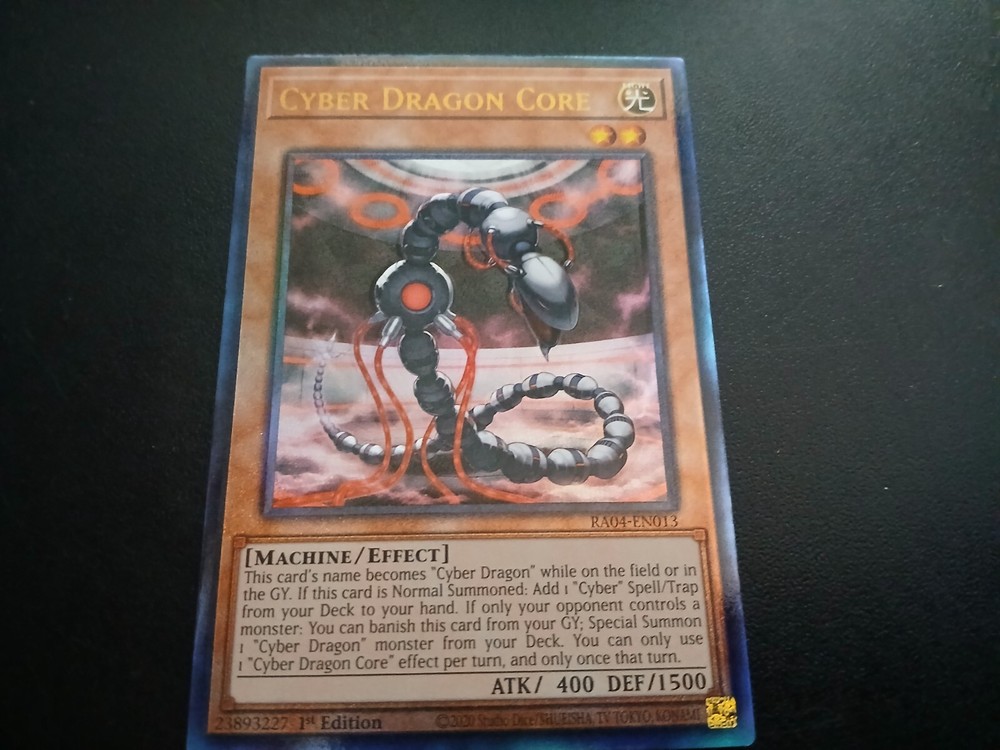 | Card Text | This card's name becomes "Cyber Dragon" while on the field or in the GY. If this card is Normal Summoned: Add 1 "Cyber" Spell/Trap from your Deck to your hand. If only your opponent controls a monster: You can banish this card from your GY; Special Summon 1 "Cyber Dragon" monster from your Deck. You can only use 1 "Cyber Dragon Core" effect per turn, and only once that turn. |