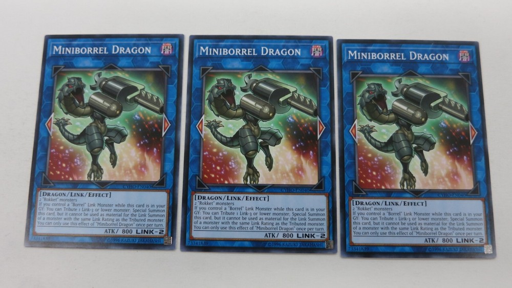 Welcome to Great_Deals_On_Collectibles.We are in the retail hobby sector and have been since 1991.We sell sportscards,gaming cards,comic books,action figures,plush toys and various other hobby related items.We have been on Ebay since 1999.We try to make buyers experience on EBAY as satisfying as possible.Our feedback on Ebay speaks volumes.Every item we have up for auction is LIVE and ready to be shipped upon payment. If you have any questions feel free to contact us,thanks for showing interest. YUGIOH You are bidding on 3x MINIBORREL DRAGON LINK UNLIMITED CYHO-EN040 COMMON YUGIOH NM / UNPLAYED