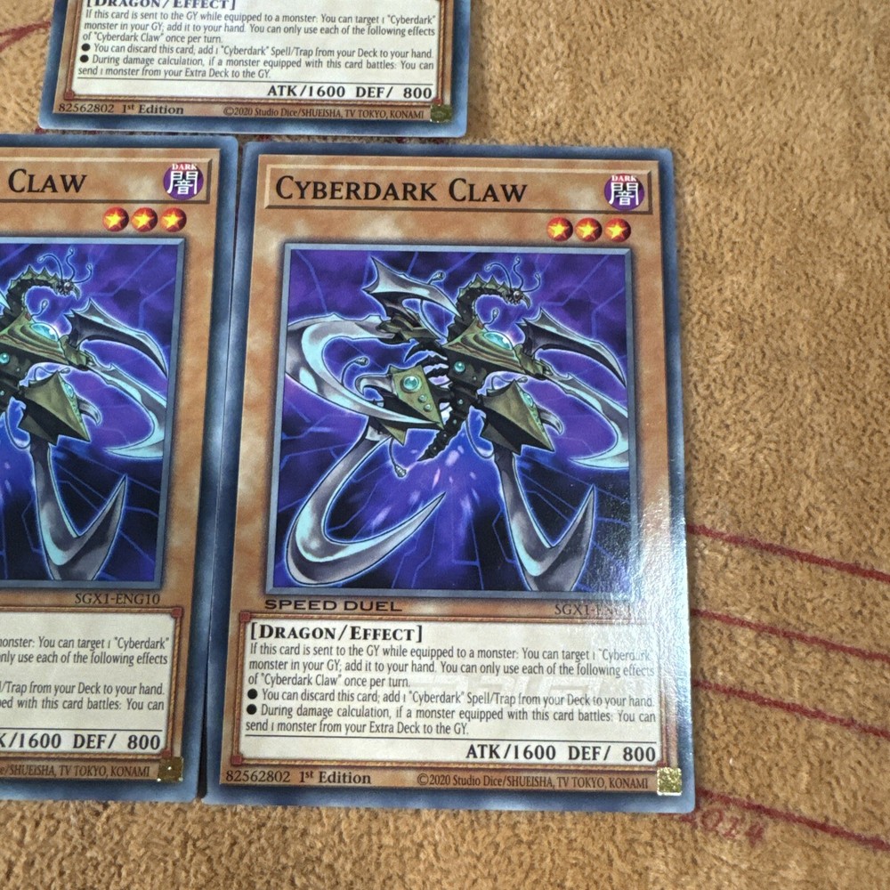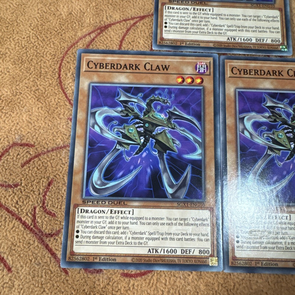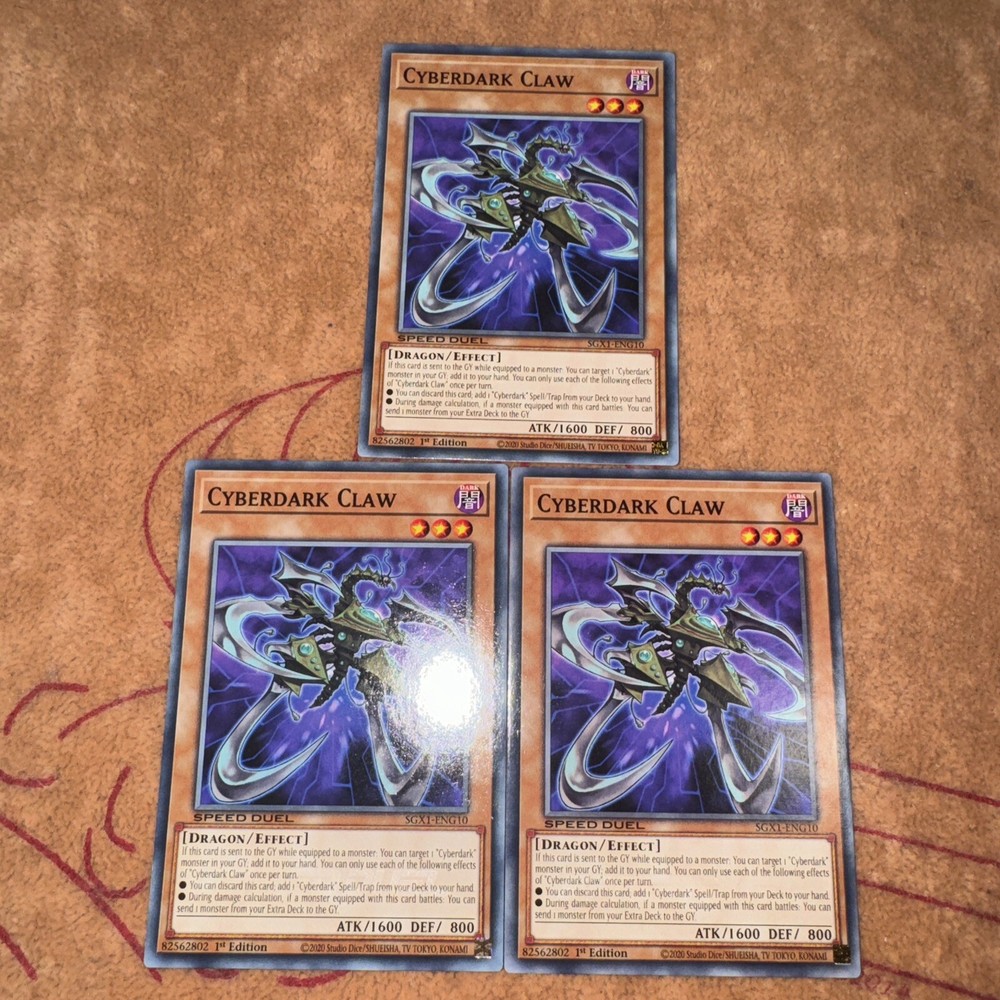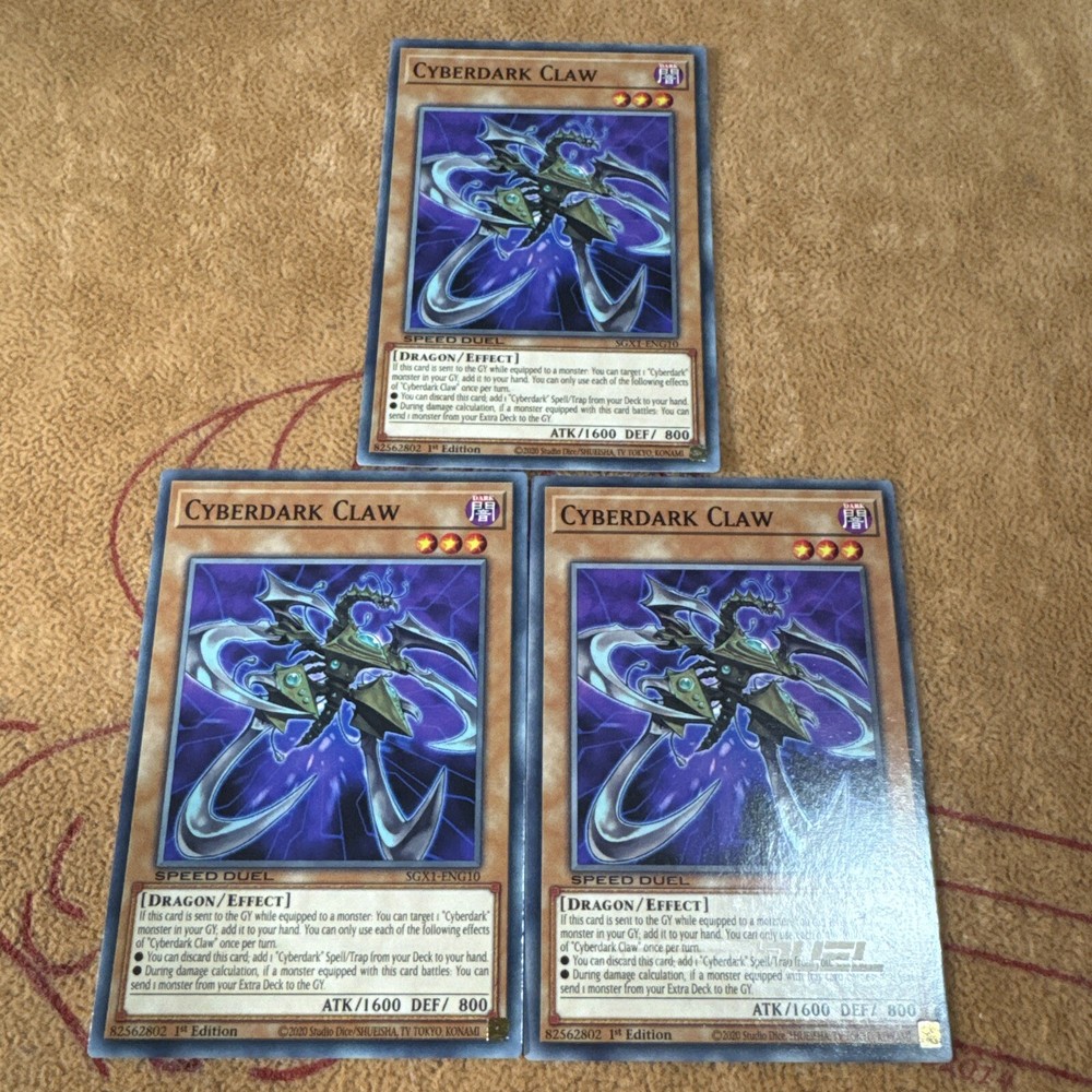 š„ 3x YUGIOH Cyberdark Claw SGX1-ENG10 Common PLAYSET SPEED DUEL NM 1ST ED This item will be sent in a plastic sleeve/deck protector sleeve and in a toploader for maximum protection. Shipping is FREE! Payment is due immediately. The faster the payment the faster i'll ship out. Questions or comments?? Feel free to contact me. I'll get back to you within 24 hours. Check out my eBay store for more Yugioh items!
