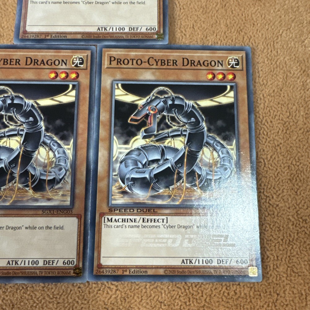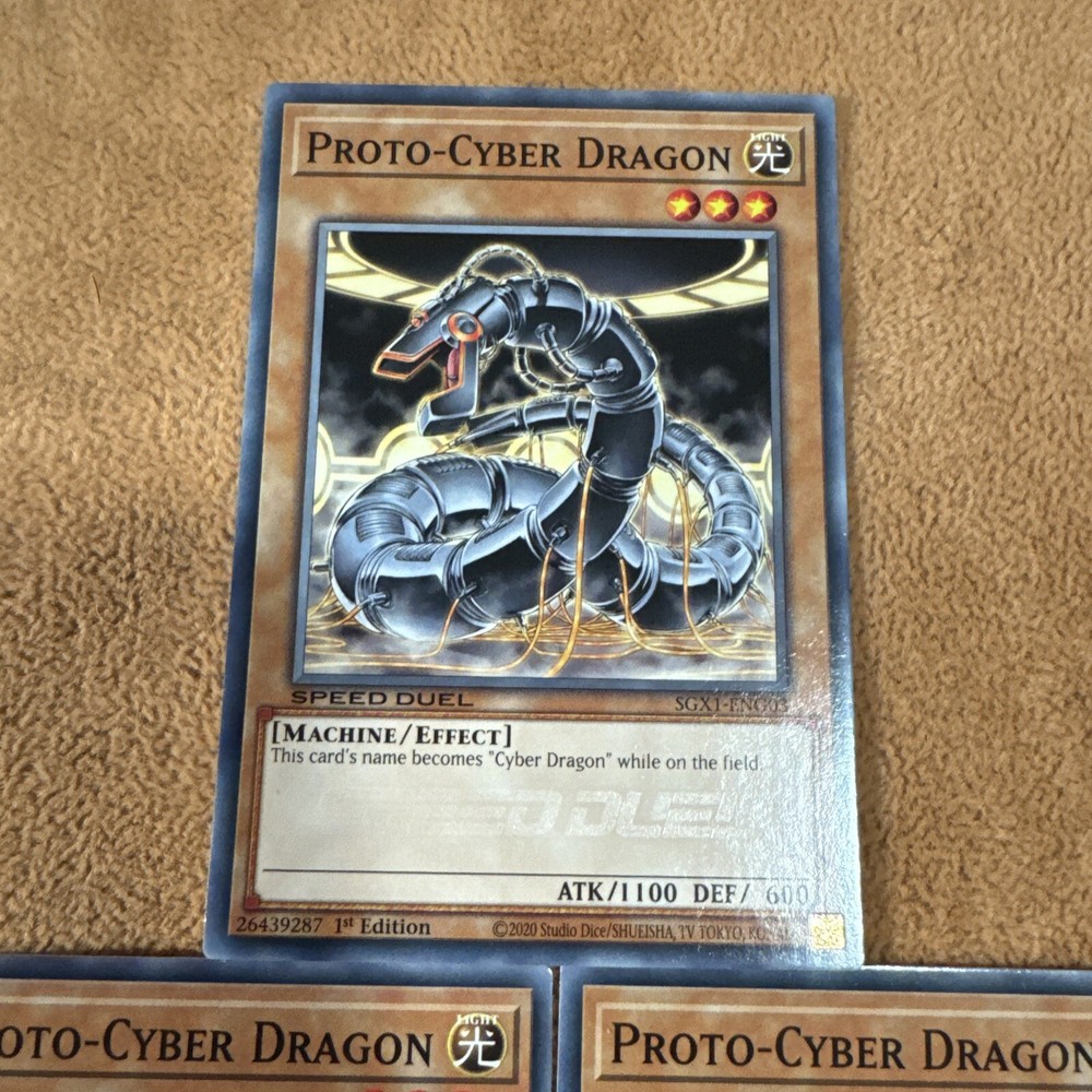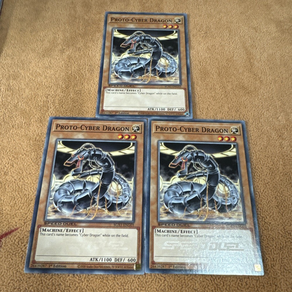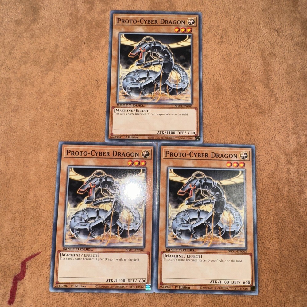 🔥 3x YUGIOH Proto-Cyber Dragon SGX1-ENG03 Common PLAYSET SPEED DUEL NM 1ST ED This item will be sent in a plastic sleeve/deck protector sleeve and in a toploader for maximum protection. Shipping is FREE! Payment is due immediately. The faster the payment the faster i'll ship out. Questions or comments?? Feel free to contact me. I'll get back to you within 24 hours. Check out my eBay store for more Yugioh items!
