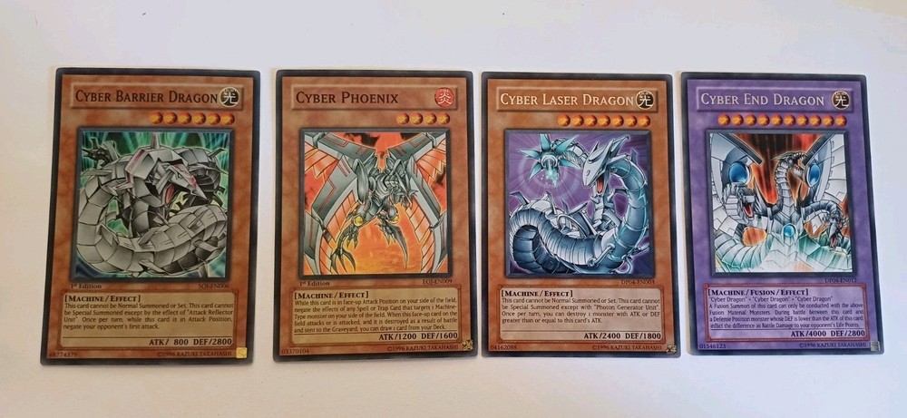 Dive into the world of high-stakes duels with this exclusive 4-card bundle of Yu-Gi-Oh! Cyber Machine Monsters. Highlighting the iconic Cyber Dragon, this set includes two 1st Edition cards and two Unlimited versions, all boasting the sleek Holo finish that makes them stand out in any collection. With their Machine creature type and Effect card classification, these monsters are ready to unleash techno-magic on your opponents. Crafted by Konami, these cards feature the Light attribute and are a must-have for enthusiasts aiming to bolster their deck or showcase. The rarity of these cards ensures they're a valuable addition, and being non-autographed, they maintain the classic allure that has captivated players for years. Whether for play or display, this bundle is a fine acquisition for any Yu-Gi-Oh! TCG aficionado.