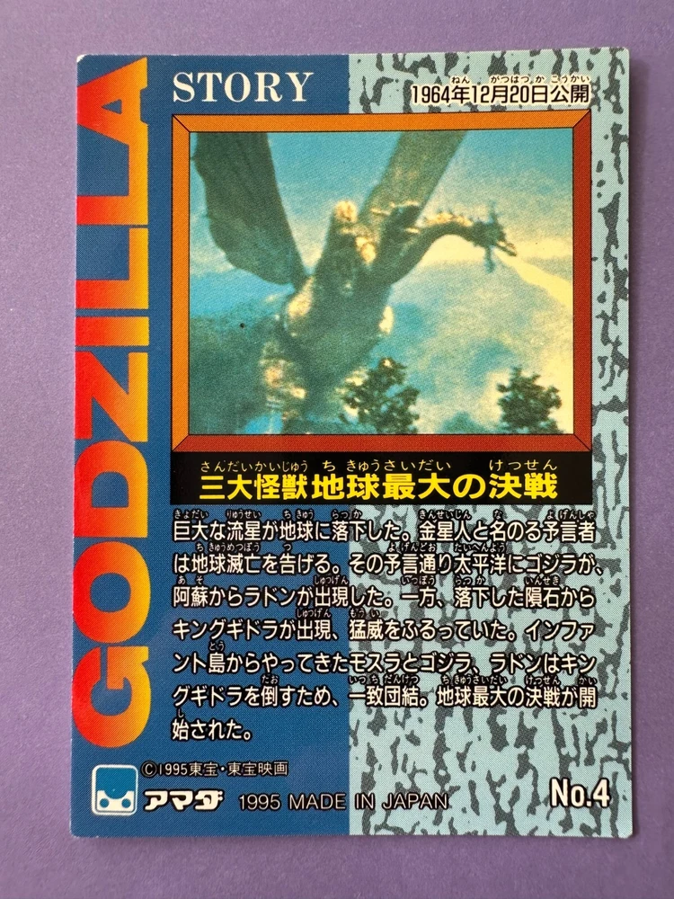 #4 Godzilla CARD TOHO amada 1995 very rare Japanese F/S