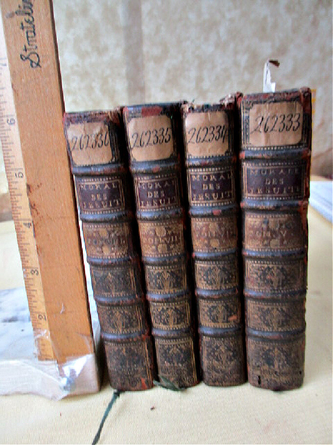 ge292. Four volumes, 5, 6, 7 8. Unknown publisher and author (Cambout, found from other source). French language. 6" tall, 451 pages, 405 pages, plus errata, 434 pages and 547 pages. Full calf covers, ribbed and gilt decorated spines. Strong, with 2 hinges lightly cracked. Old paper stickers on top of all spines. No other marks. At least, Good condition. Vol. 5 with History of Dom.Bernardin in Paraguay & Dom. Philippe of Manile in Philippine Isles. Do not hesitate to e-mail with any questions. As Always, Satisfaction Guaranteed! I expect to receive payment within 10 days, unless we have made other arrangements. Shipping will be USPS Media or First Class, depending on weight. If you prefer Priority mail, I will be glad to make the adjustment. I'm glad to combine multiple purchases in order to minimize shipping costs. I WILL SHIP INTERNATIONALLY, and I try to be as economical as possible with the shipping costs. RETURN POLICY: Satisfaction Guaranteed! Track Page Views With Auctiva's FREE Counter