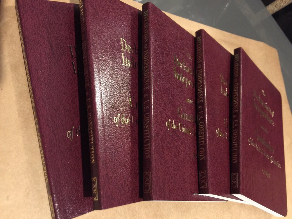 CONSTITUTION DAY IS COMING! SEPTEMBER 17! QUANTITY 5 POCKET SIZE CONSTITUTIONS BRAND NEW & POCKET SIZED!! The Declaration of Independence and the Constitution of the United States T h icker and larger print 90+ pages (The Pocket Constitution) (Paperback) With a preface by Roger Pilon To encourage people everywhere to better understand and appreciate the principles of government that are set forth in America’s founding documents, the Cato Institute published this pocket-size edition. Can the government do that? Check the Constitution! About the Pocket Constitution To encourage people everywhere to better understand and appreciate the principles of government that are set forth in America’s founding documents, the Cato Institute published this pocket edition (3.5" x 5") of the Declaration of Independence and the Constitution of the United States of America. With more than five million copies in print, this edition’s influence has been observed far and wide. It has been held up by senators at press conferences and by representatives during floor debate; found in federal judicial chambers across the country; appeared at conferences on constitutionalism in Russia, Iraq, and elsewhere; and sold at bookstores, U.S. Park Service stores, and other outlets nationwide. It includes the Bill of Rights and all of the amendments. About the Writer of the Preface Roger Pilon is vice president for Legal Affairs, B. Kenneth Simon Chair in Constitutional Studies and director of the Center for Constitutional Studies at the Cato Institute. ISBN: 978-1-939709-68-4 Number of Pages: 90+ What Others Have Said "...take a minute to consider a gift that hasn't gone out of style in more than 200 years." -- Wall Street Journal "Who needs play-stations when you can give the kids Thomas Jefferson?" -- Independent (UK) YOU ARE PURCHASING 5 OF LARGE PRINT Round Edge POCKET SIZED THE DECLARATION OF INDEPENDENCE & CONSTITUTION OF THE UNITED STATES OF AMERICA. Quick Shipping VIA USPS Shipping Within The United States. Shipping and Handling: Free Media Mail Shipping Refund Policy: Refunds are accepted up to 14 days after purchase. The buyer is responsible for the return shipping costs. Please contact us for instructions on how to return this item. The Bill of Rights is the collective name for the first ten amendments to the United States Constitution.
