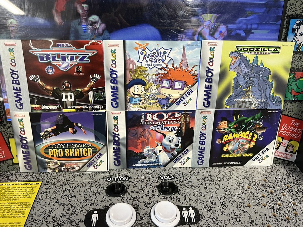 6 GBC Manuals: Tony Hawk, NFL Blitz, Rugrats, 102 Dalmatians, Godzilla, Rampage