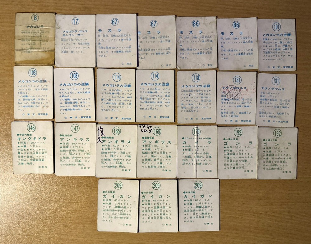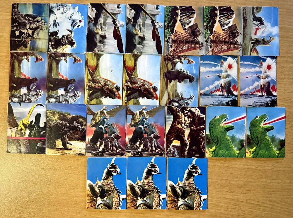 This is a lot of 1970’s Yamakatsu Godzilla mini cards. Card size is 2” x 2.5” and there are 24 total, please refer to photos for condition.