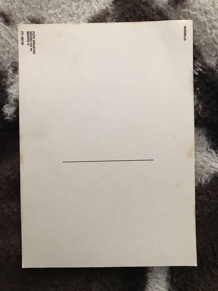 A rare postcard of Godzilla in the 1980’s when it was purchased. A must have for any collector....