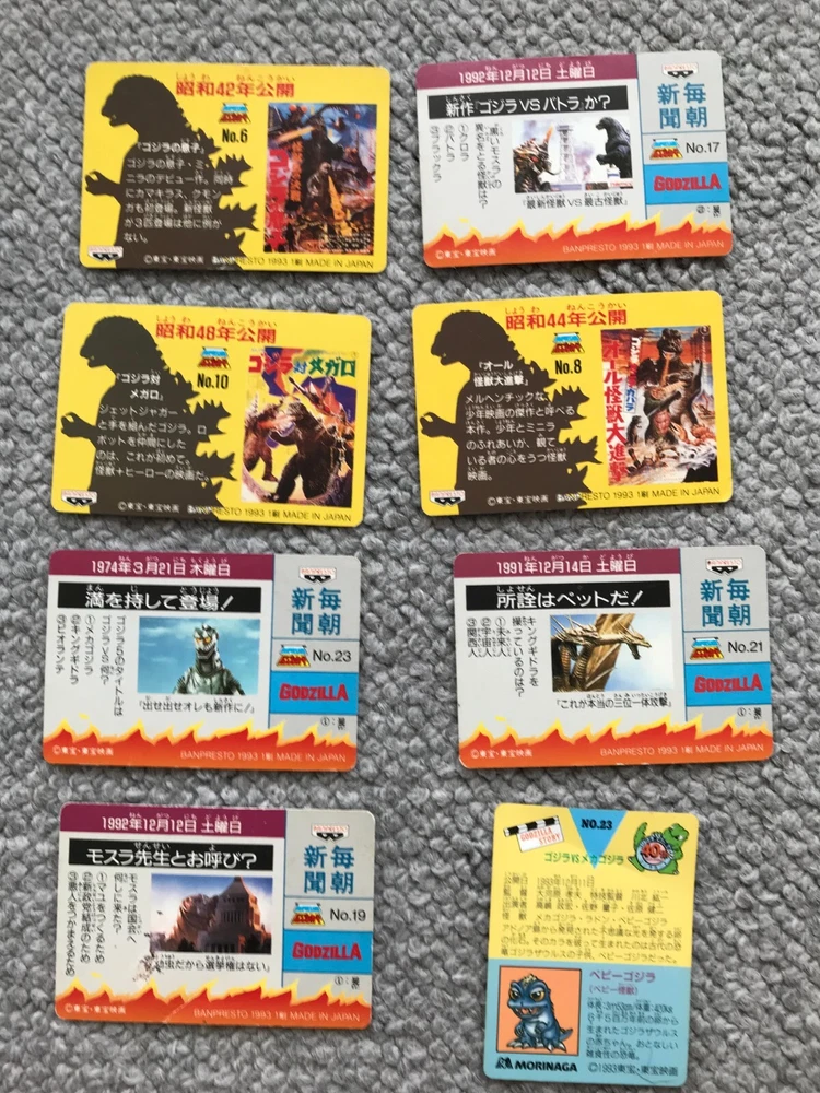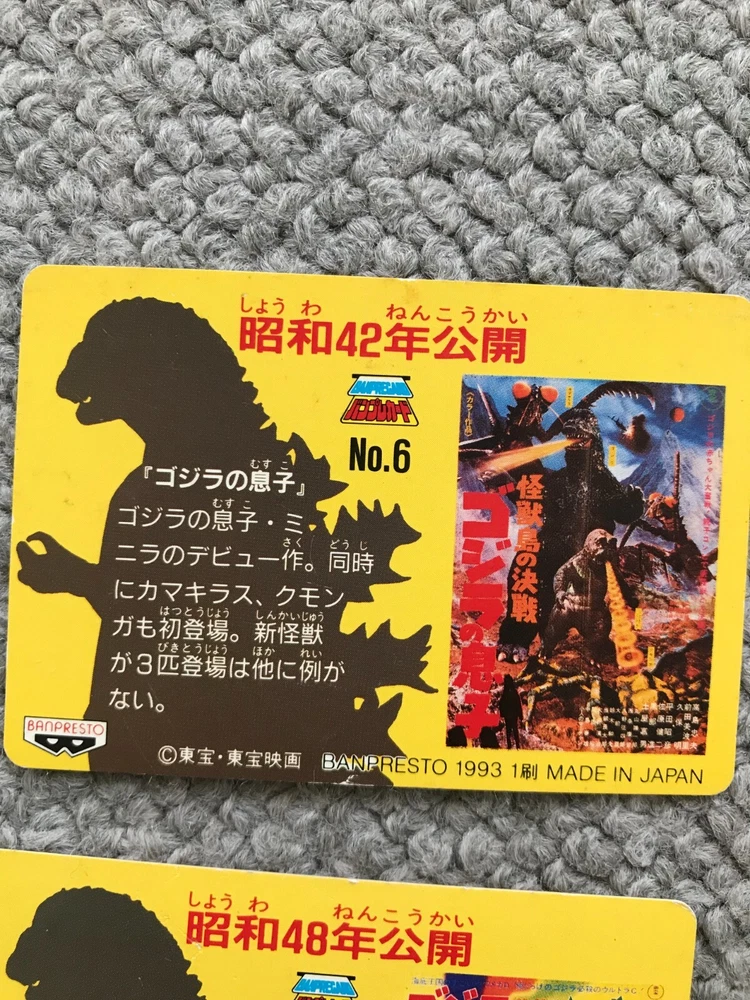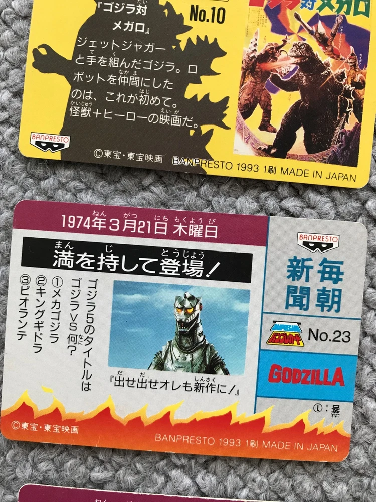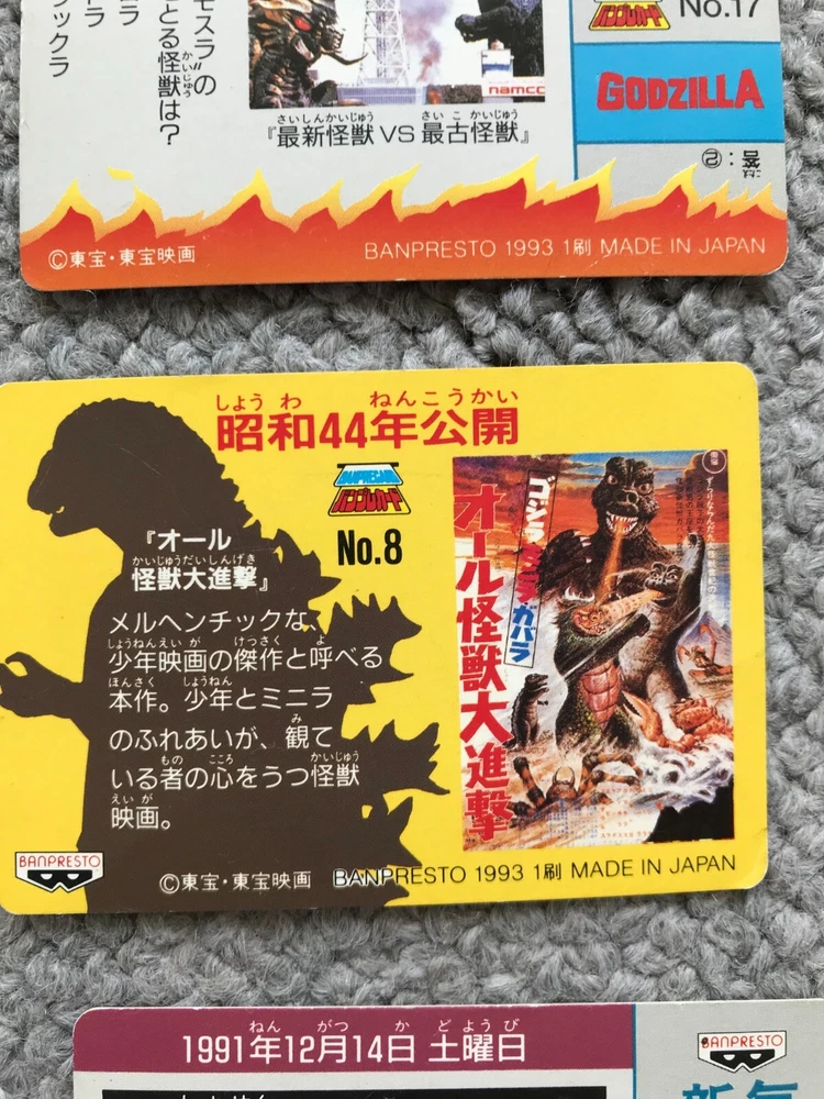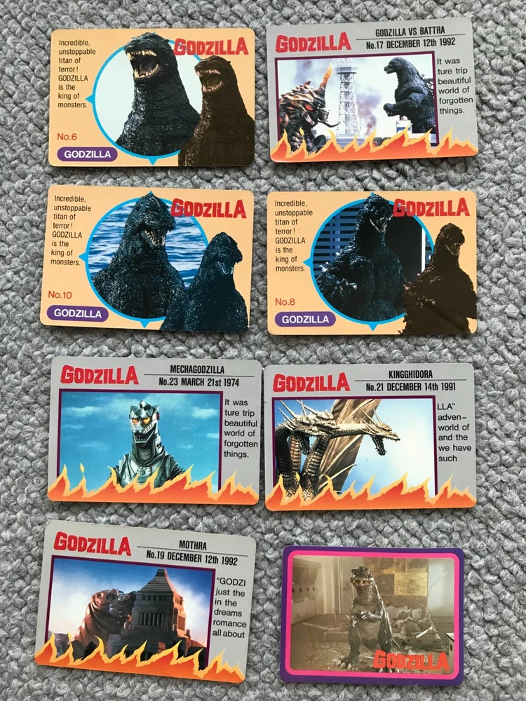 8CARDS Japanese Godzilla Movie BANPRESTO TOHO 1993 1st edition Vintage JAPAN Description About This Items Kingghidora,Mechagodzilla,Godzilla,Battra,Mothra,Babygodzilla Condition Vintage. Included Items 8CARDS Shipping We always send the item with a tracking number. So please place an order without any concern on delivery. You can always track the delivery status. Shipping is only available to the address registered in eBay. If you want us to send another address, please change your address on eBay and then place an order. Shipping is available from Monday to Friday. Weekends are not available because freight (shipping) companies are closed. We do not mark merchandise values below value or mark items as “gifts” – Japan, US and International government regulations prohibit such behavior. If your address is in the remote areas defined by the freight (shipping) company, please pay the additional shipping fees with PayPal. About Importer's Obligation Import duties, taxes, and charges are not included in the item price or shipping cost. These charges are the buyer's responsibility. Please check with your country's customs office to determine what these additional costs will be prior to bidding or buying. Thank you for your understanding.