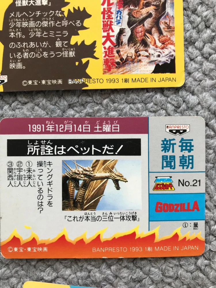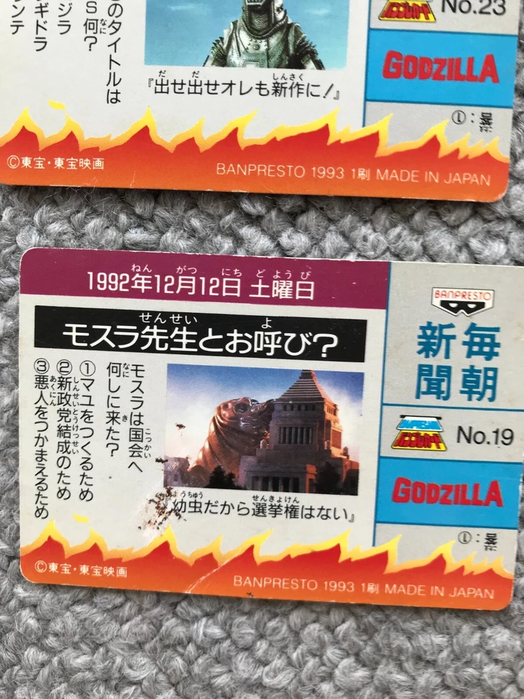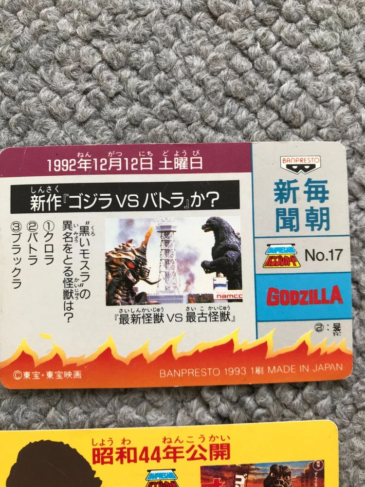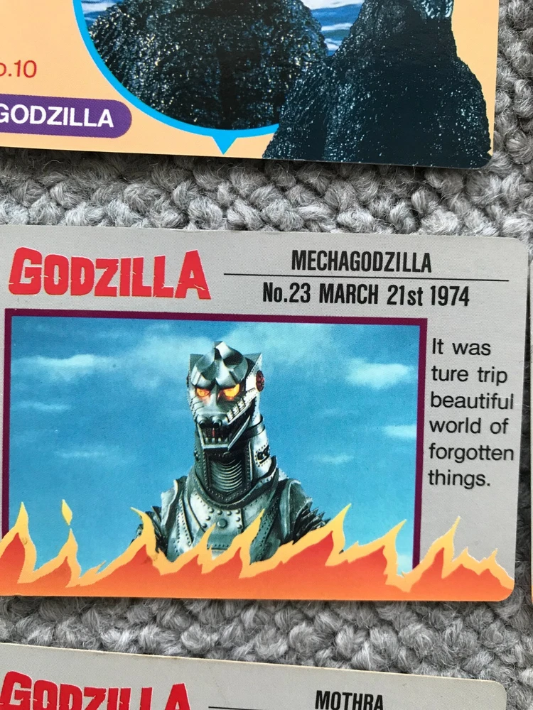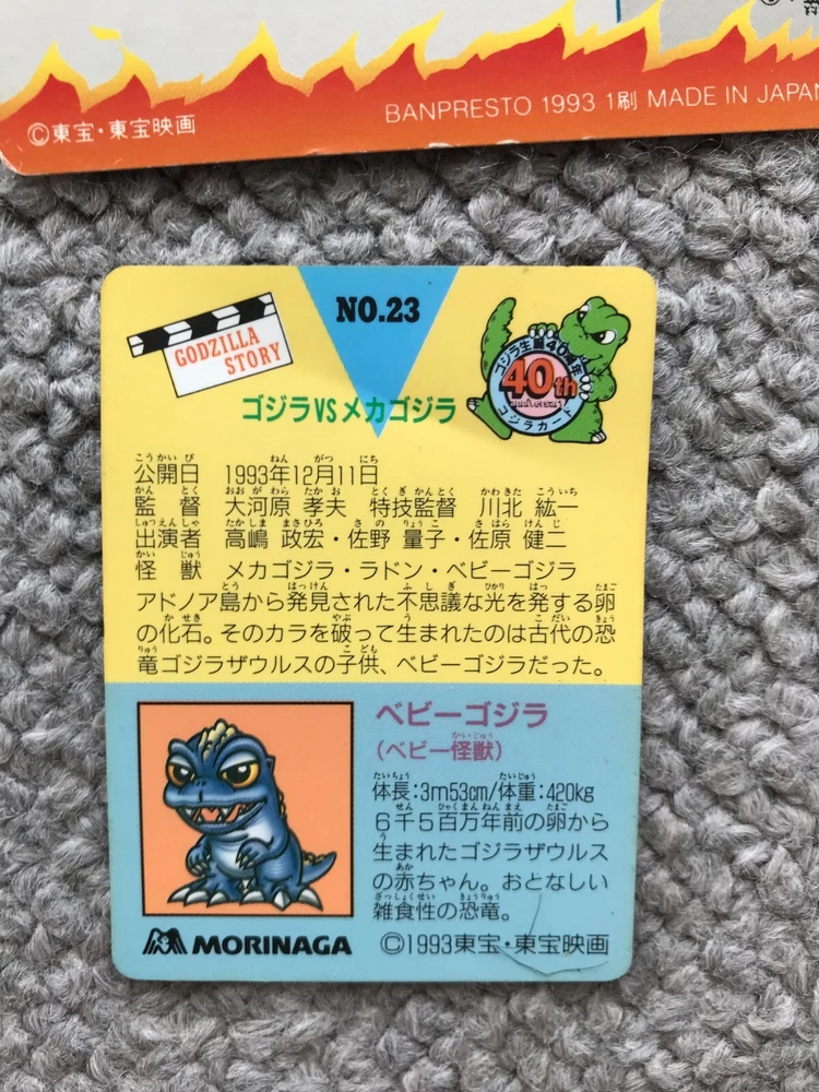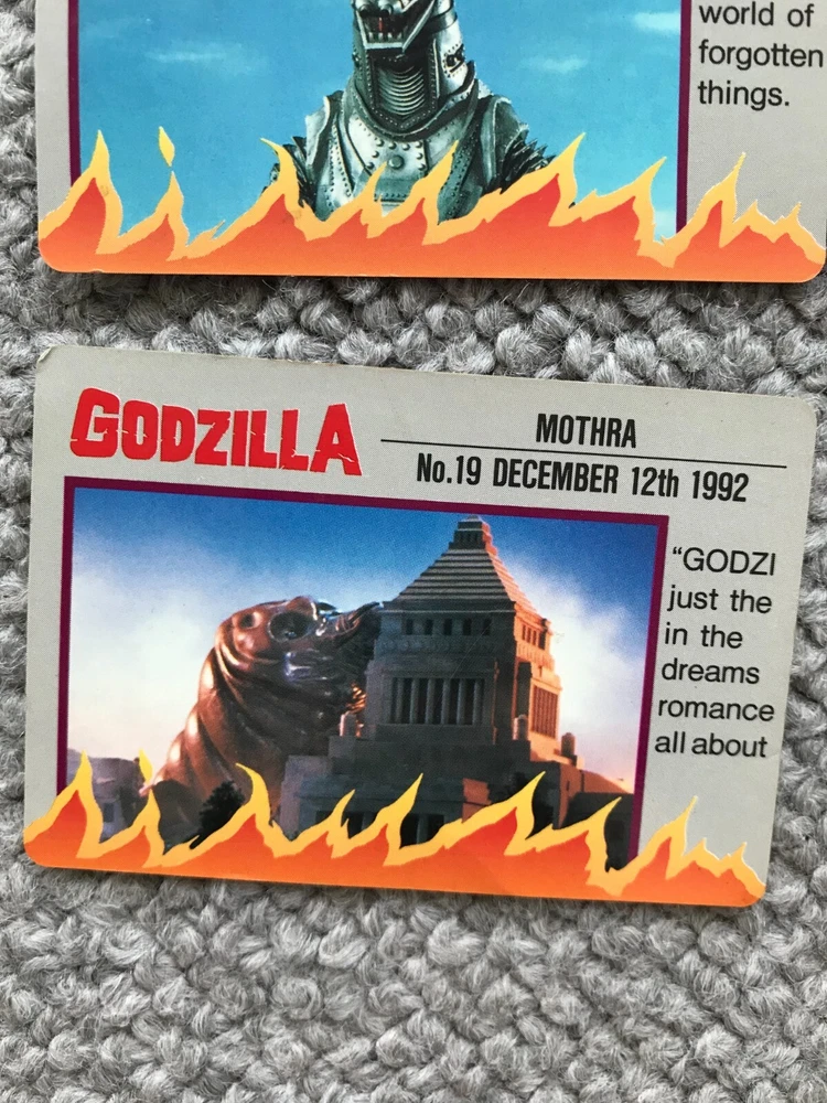 8CARDS Japanese Godzilla Movie BANPRESTO TOHO 1993 1st edition Vintage JAPAN Description About This Items Kingghidora,Mechagodzilla,Godzilla,Battra,Mothra,Babygodzilla Condition Vintage. Included Items 8CARDS Shipping We always send the item with a tracking number. So please place an order without any concern on delivery. You can always track the delivery status. Shipping is only available to the address registered in eBay. If you want us to send another address, please change your address on eBay and then place an order. Shipping is available from Monday to Friday. Weekends are not available because freight (shipping) companies are closed. We do not mark merchandise values below value or mark items as “gifts” – Japan, US and International government regulations prohibit such behavior. If your address is in the remote areas defined by the freight (shipping) company, please pay the additional shipping fees with PayPal. About Importer's Obligation Import duties, taxes, and charges are not included in the item price or shipping cost. These charges are the buyer's responsibility. Please check with your country's customs office to determine what these additional costs will be prior to bidding or buying. Thank you for your understanding.