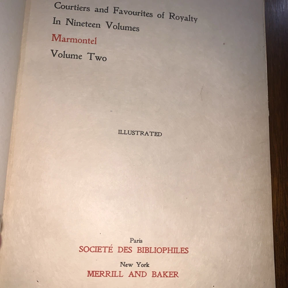 This set of 9 leather-bound volumes titled "Courtiers and Favorites of Royalty" is a limited edition biography and autobiography collection published by Merrill and Baker in 1900. The books are numbered and have luxurious illustrations, making them a great addition to any collector's library. The author, Marmontel, provides an insightful look into the lives of royalty, with a focus on their courts and favorites. The set is an original copy and is in excellent condition, perfect for anyone interested in history, biography, or literature.