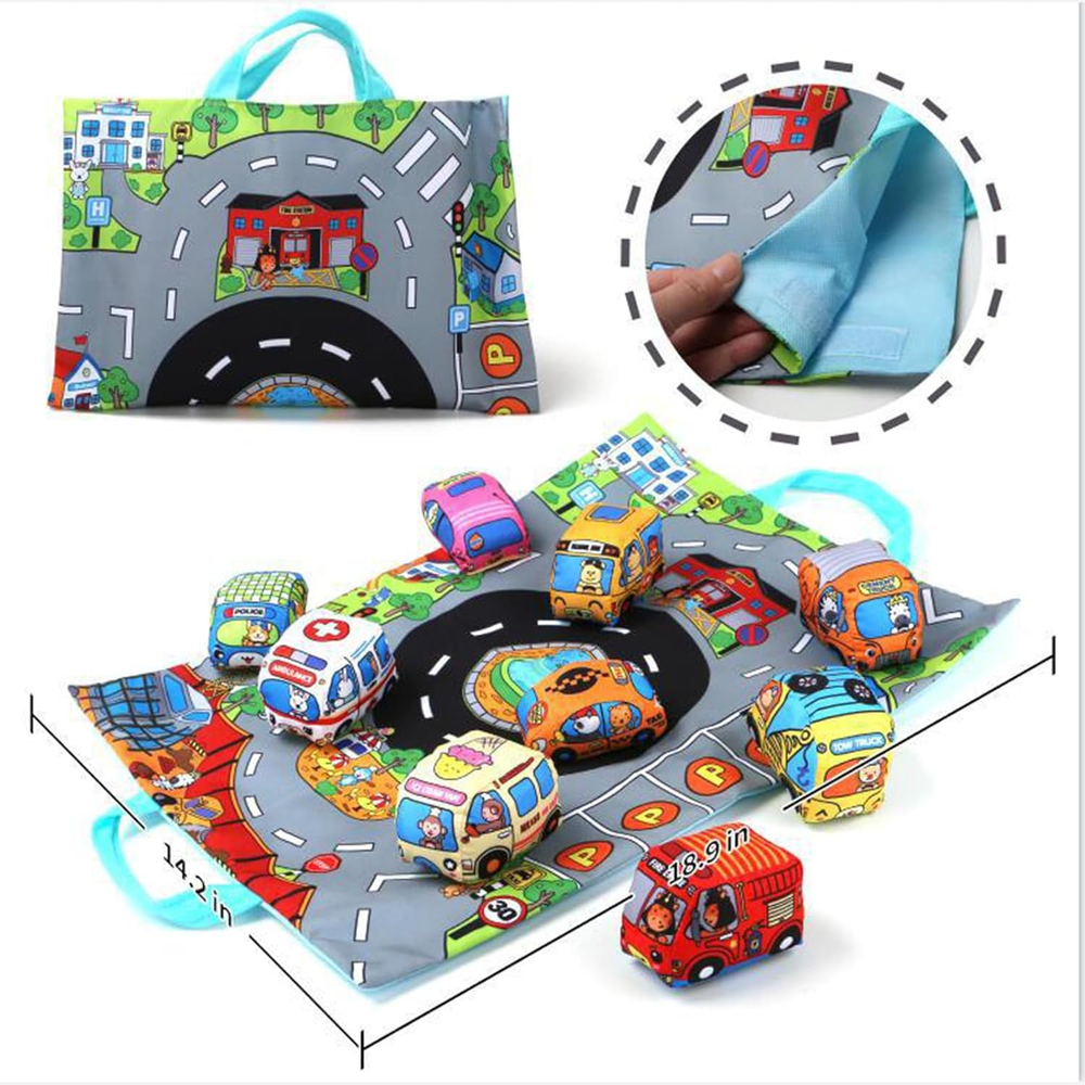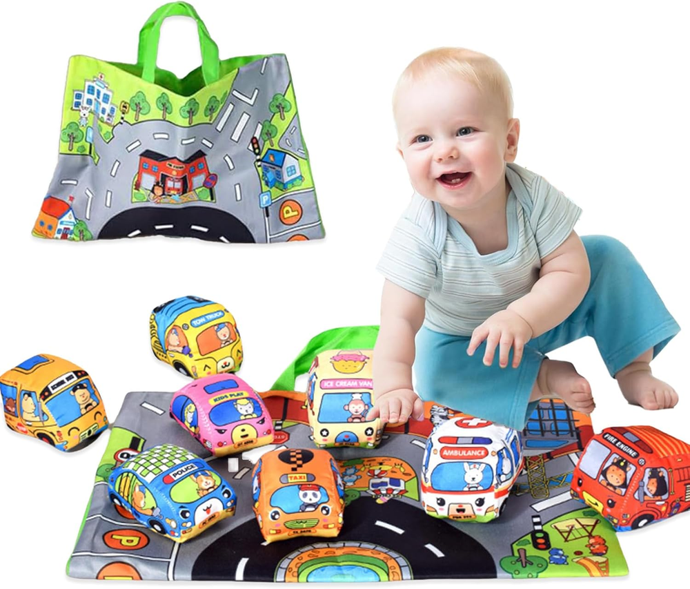 Absolutely love this set! My toddler is obsessed with the colorful cars and sounds. The mat is perfect for playtime and the storage bag keeps everything tidy. Super soft and safe - a total hit!