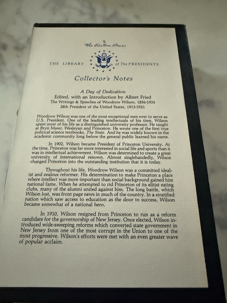 A Day of Dedication Woodrow Wilson Easton Press Leather Bound Library Presidents. Shipped with USPS Media Mail.