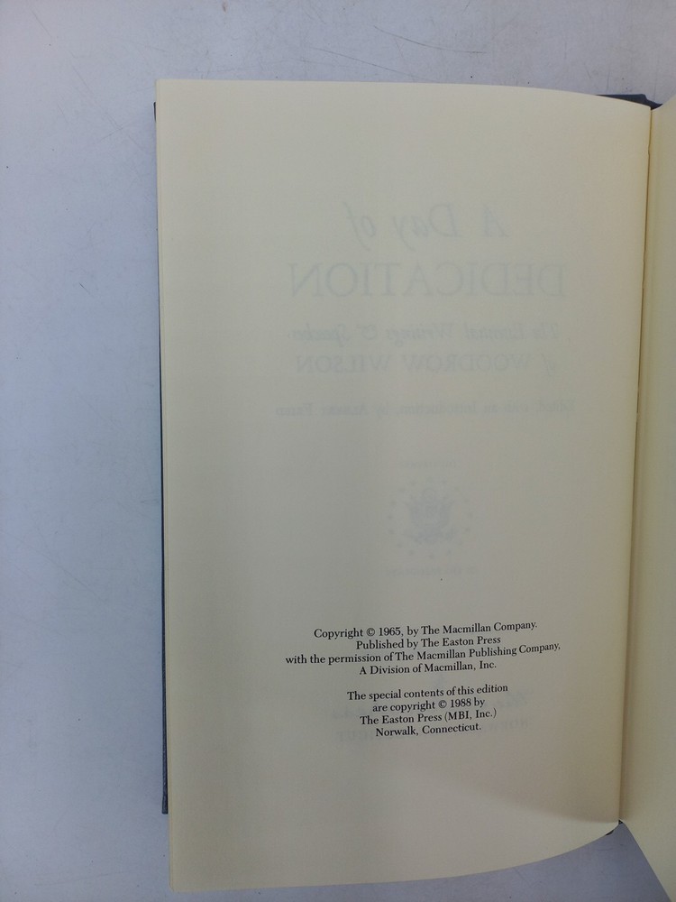 A Day of Dedication: Writings & Speeches of Woodrow Wilson - Easton Press. Book is in good condition. Does show some wear from The previous owner or because of age. Please see pictures for accurate details. Free shipping