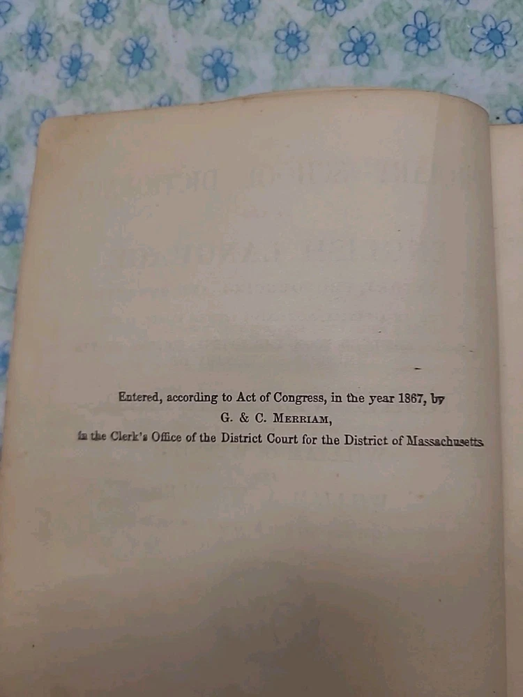 This is a rare and valuable copy of "A Dictionary for Primary Schools" by Noah Webster, published in New York, NY in 1867 by N. & J. White. This original leather-bound book is not personalized and is not a facsimile. It is a unit quantity and is not part of a set. The book is written in English and is not illustrated. It is a reference book and is not a novel or a story. The book is not signed and is not a first edition. It is a collectible item and is perfect for anyone interested in dictionaries, thesauri, and the English language.