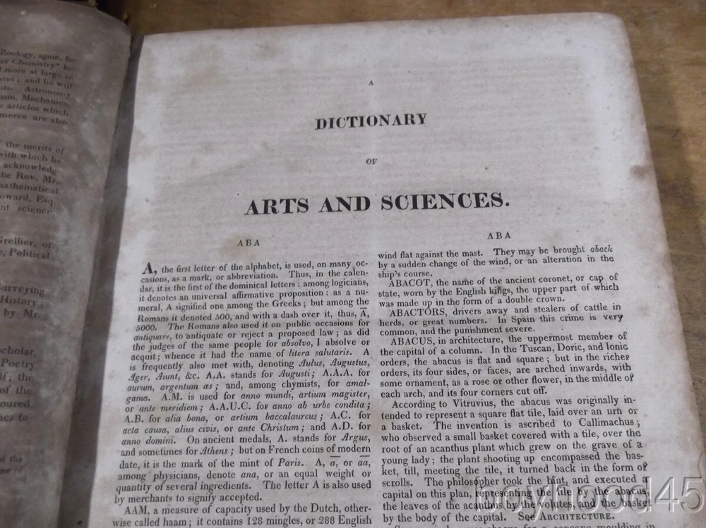 Gregory's Dictionary of Arts & Sciences by James Mitchell--Vol. I, Circa 1851. Gregory's Dictionary of Arts & Sciences by James Mitchell--Vol. I, Circa 1851. Click images to enlarge Description This is VOLUME I ONLY of "The Portable Encyclopaedia: Or, A Dictionary of the arts and Sciences on the Basis of Dr. Gregory's Comprehending the latest Improvements in Every Branch of Useful Knowledge" by James Mitchell. Originally published by Thomas Tegg, London, 1826 in a single volume edition. This book has NO TITLE PAGE and all publication information is absent. There is a gift note on front endpaper dated 1851. This is Volume I ONLY of a multi-volume edition published circa 1850. Large volume bound in full leather. There is some internal staining and foxing/spotting. Pages have darkened with age. There are also a few torn pages. However, the early illustrations are present and the book retains collectible value beyond it's textual content. I will call the book Fair to About Good. Measures 9 X 11 1/2. Unpaginated. A SCARCE FEW copies of this work can be found on other internet booksites for upwards of $320!! I will offer this copy of Volume I ONLY for $30.00 plus $7.50 S&H in the US. Shipping costs to Canada will be considerably less than the general international rate quoted. Condition Notes: Shows considerable wear and internal spotting/foxing. Remains a wonderful collectible item!! Payment Paypal Shipping Domestic shipping: Fixed Shipping Charges. International shipping: Fixed Shipping Charges. Shipping Carrier Domestic International Shipping Locations Usps Parcel Select $7.50 - - Usps Priority Mail Medium Flat Rate Box Intl - $83.65 Worldwide I will ship to: United States, Worldwide Vendio Images: More than just a pretty image. 250+ Mobile Responsive & Active Content Free Listing Templates with Vendio Sales Manager. Vendio provides powerful selling automation for sellers of all sizes. Get business information that counts! - Vendio Counters are active content free.