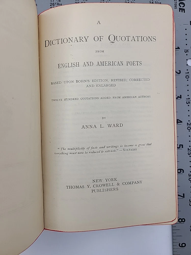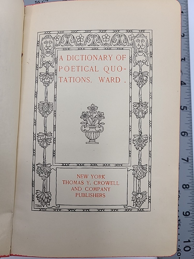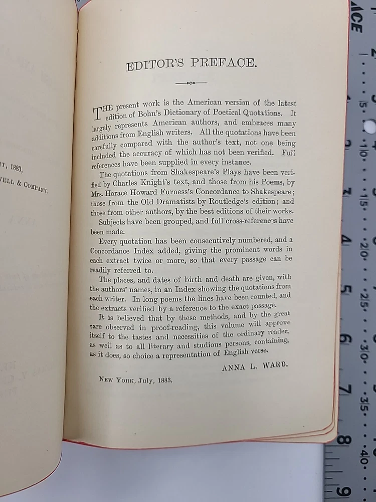A Dictionary of Poetical Quotations Anna L Ward 1883 New York Thomas Y Crowell and Company Publishers Leather bound Condition is preowned. Please see pictures for details. Shipped out the same business day with USPS.
