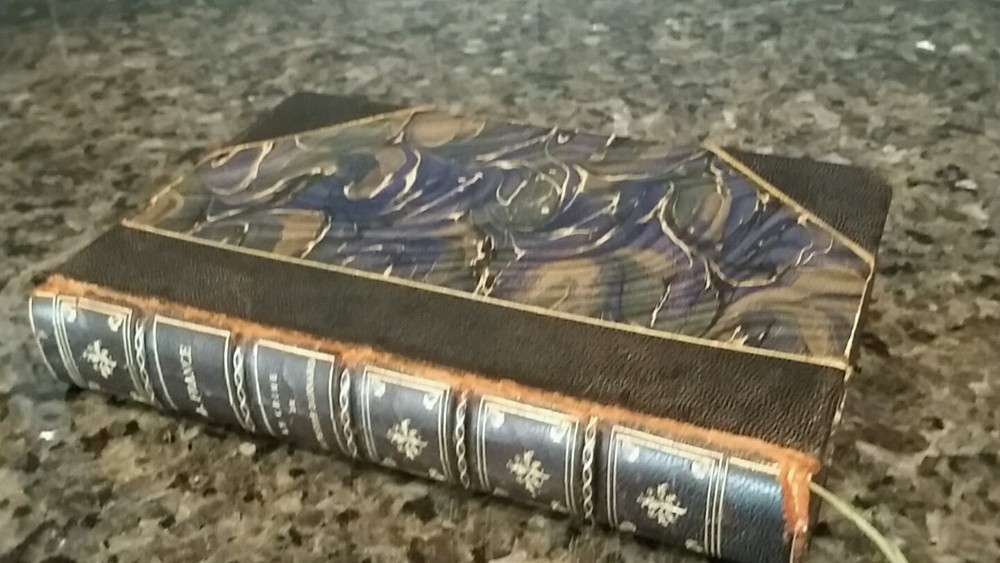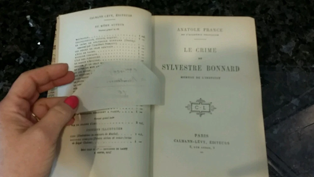 I brought some lovely things from my Victorian house in NJ to the new house in Florida. I don't have room for it all and am selling a large number of my collectibles. Background: I bought this piece at an auction in NJ that clears Manhattan estates. Description: This is a leather edition of a Anatole France's The Crime of Sylvestre Bonnard ( French : Le Crime de Sylvestre Bonnard ) in French . It is the first novel by Anatole France , published in 1881. With this work, one of his first written entirely in prose, he made himself known as a novelist; he had been primarily known as a poet affiliated with Parnassianism . The novel received the Académie française prize. Published by Calmann-Levy in Paris Leather spine and quarter panels Blue leather with gilding on spine, marbled paper on covers This book is not dated. The style of binding is in line with the publication date of 1881, and this may be a first bound edition. Research indicates the first edition was produced as a pamphlet . 323 pages Has a blue ribbon placeholder Gilding on top pages Marbled end papers Five raised bands on the spine Gilding on front and back covers and along spine Condition: Handsome book with some wear to spine and where board meets the spine Knocked corners Firmly bound Very minor yellowing of paper Please feel free to contact me if you have any questions. Background on the author: Sylvestre Bonnard, a member of the Institute, is a historian and philologist , gifted with great erudition. He lives among books, and launches himself into the research, in Sicily and Paris , of the precious manuscript of the French version of the Golden Legend , which he finally obtains. By chance he meets a young girl named Jeanne, the granddaughter of a woman he once loved. To protect the child from her abusive guardian Maitre Mouche, he takes her away, and she ends up marrying Henri Gelis, one of Bonnard's students.
