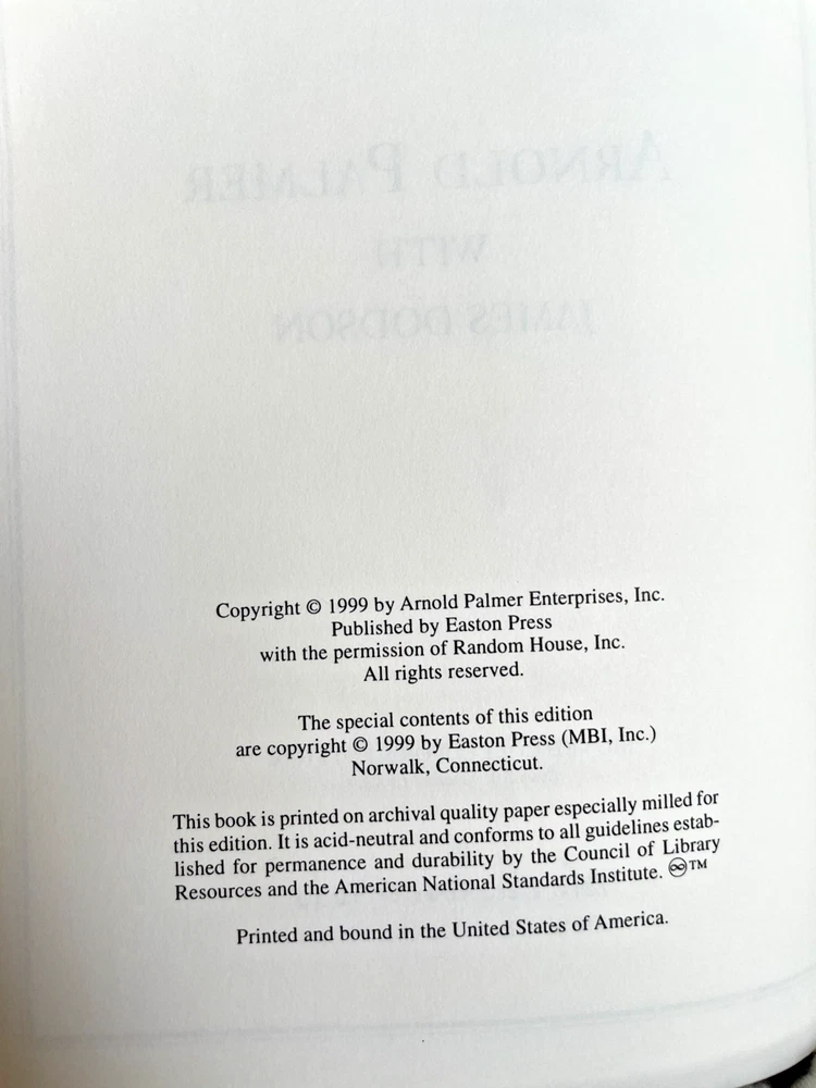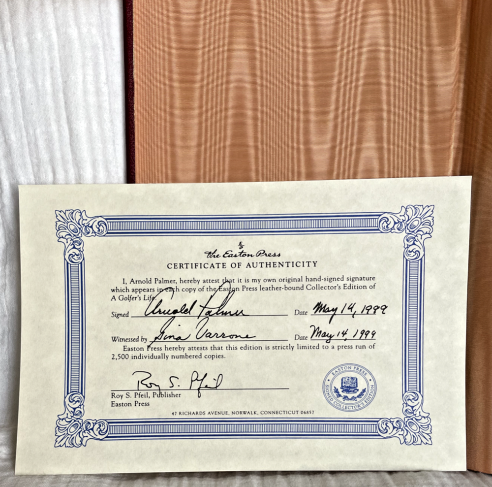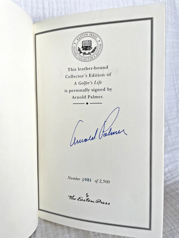 A GOLFER'S LIFE by Arnold Palmer with James Dodson Signed Collector's Edition bound in Genuine Leather Signed by Arnold Palmer. Book 1,021 of 2,500. Contains Certificate of Authenticity....