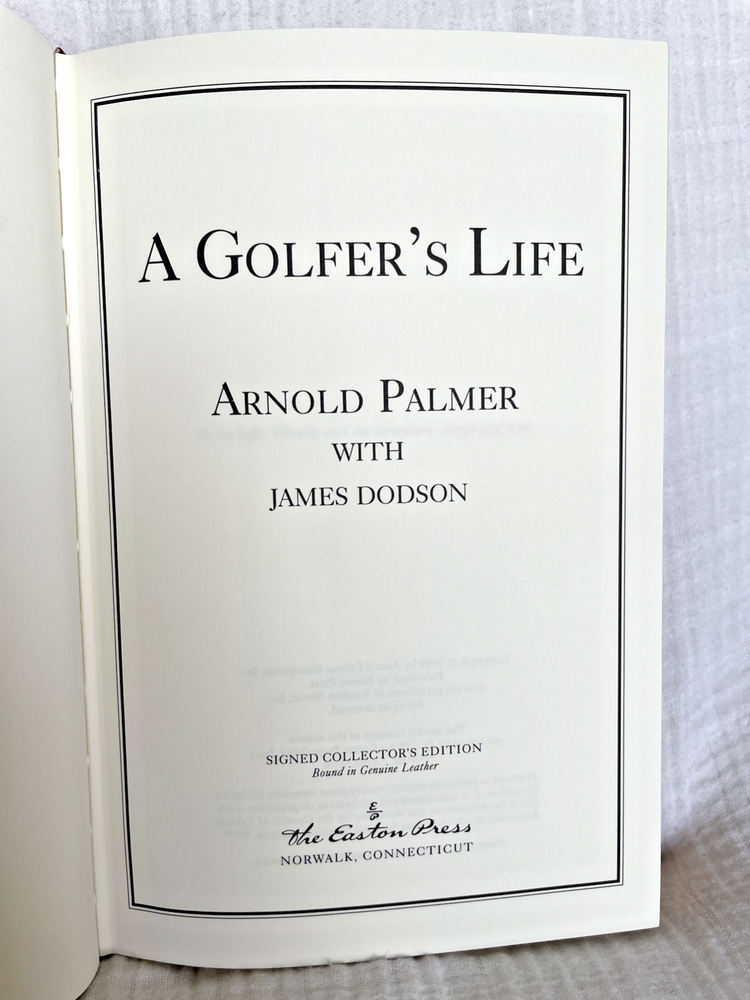 A GOLFER'S LIFE by Arnold Palmer with James Dodson Signed Collector's Edition bound in Genuine Leather Signed by Arnold Palmer. Book 1,021 of 2,500. Contains Certificate of Authenticity.