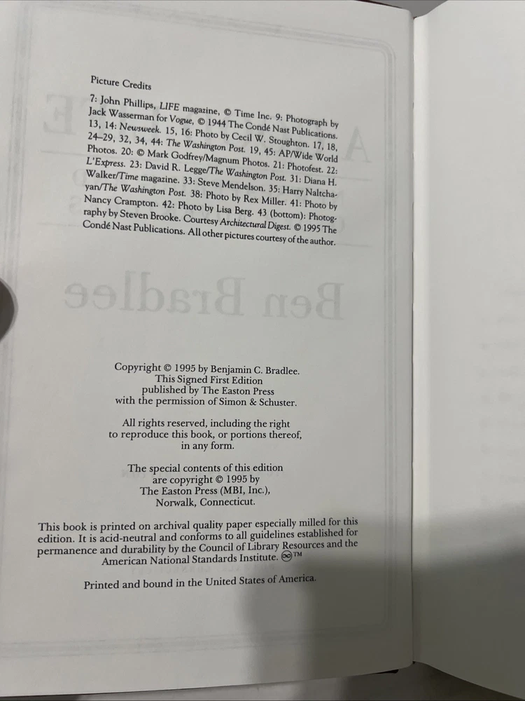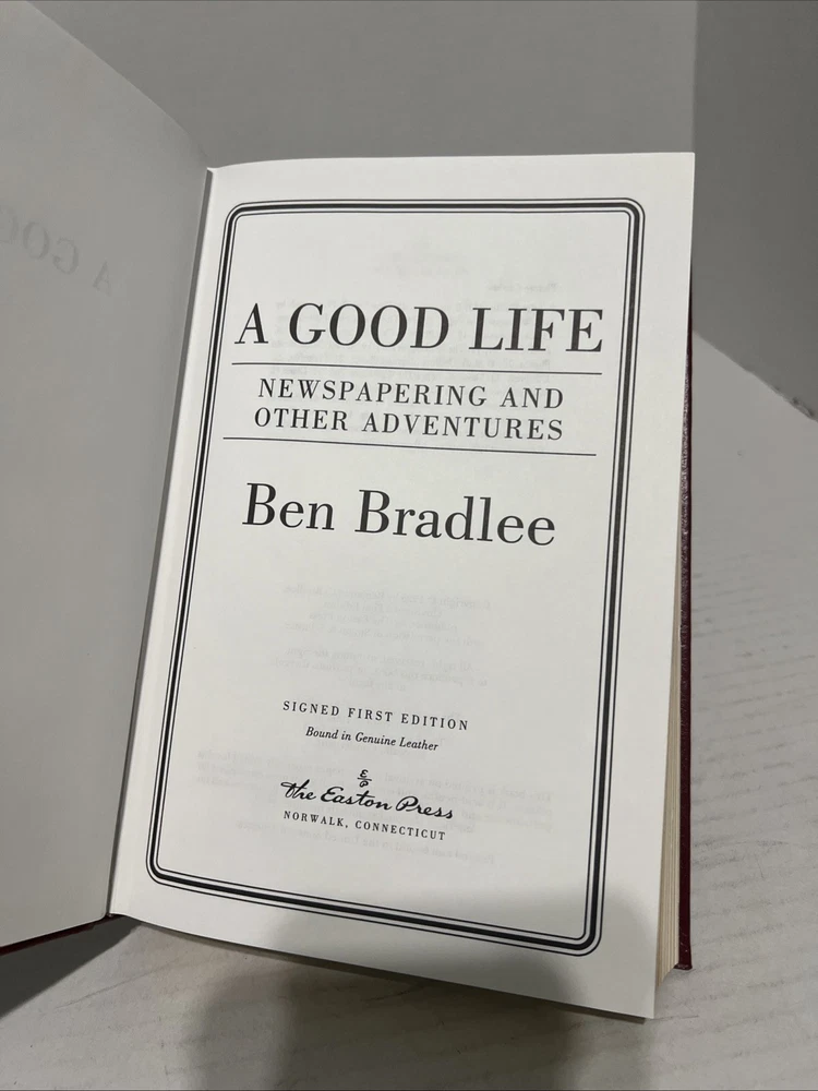 This is a rare and valuable first edition of "A Good Life" by Ben Bradlee, published by Easton Press. The book is beautifully leather-bound and includes a signature from the author. It is an original copy and has not been reprinted. The book is a biography and autobiography of the author, with topics ranging from bibliographies to indexes. It is written in English and is perfect for collectors and book enthusiasts. The book was manufactured in an unknown country or region, but its quality is undeniable. Own this piece of literary history today!