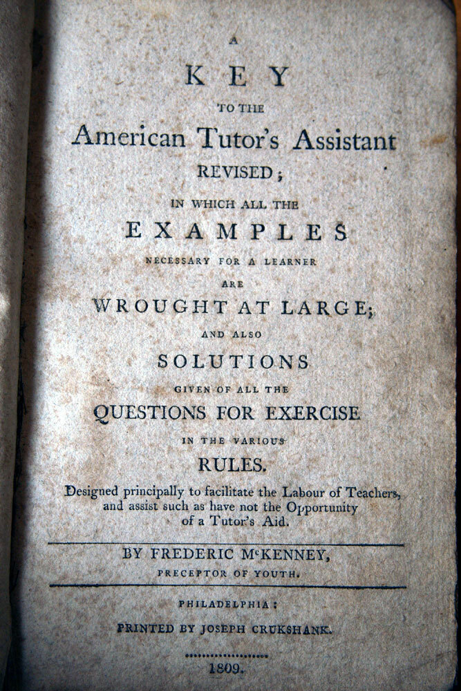 Description A Key to the American Instructor's Assistant by Frederic McKenney. Antique leather-bound book published in 1809 by Joseph Crukshank: Philadelphia. Measures approximately 4 1/4" x 7". 183+ pages. Some cover wear, binding intact, inscription at front endpaper. Books will be packed securely for safe shipment. Books will ship via USPS Media Mail, unless otherwise requested. If you would like to upgrade to an expedited shipping method, please contact me for a quote. Please view the photos and contact me with any specific questions. E2 **Please contact me with any questions prior to bidding. Check out my other listings now!** ***Please note: If you are bidding on a used or antique book... We do our best to accurately describe each book and identify any flaws it may have. If you have specific questions regarding its condition, please never hesitate to ask. Unfortunately, we cannot always inspect each page, and therefore grading is from visual inspection and browsing through the book. Unless stated otherwise, our books will contain signs of wear and age which is normal within the vintage/antiquarian category. We offer primarily used, vintage and antique books. Our books are stored in a dry, 100% smoke-free environment . We will always mention if a book has a noticeably unpleasant odor, however if you have a particularly sensitive sense of smell, we cannot recommend that you purchase any antique or vintage books. Payment Paypal Accepted. Shipping FREE USPS Media Mail shipping anywhere in the U.S. **International Buyers please contact me for a shipping quote prior to purchase.** Return Policy We consider All Sales to be Final. Returns Accepted for Full Refund of Purchase Price only if item arrives significantly not as described. Shipping & Handling costs will not be refunded under any circumstances. Please be sure that this is the item you are looking for prior to bidding. If you have any questions about the content of an item, condition of an item or a question about any of our policies please do not hesitate to ask. Feedback If you were pleased with your purchase and experience with us please leave a feedback comment.