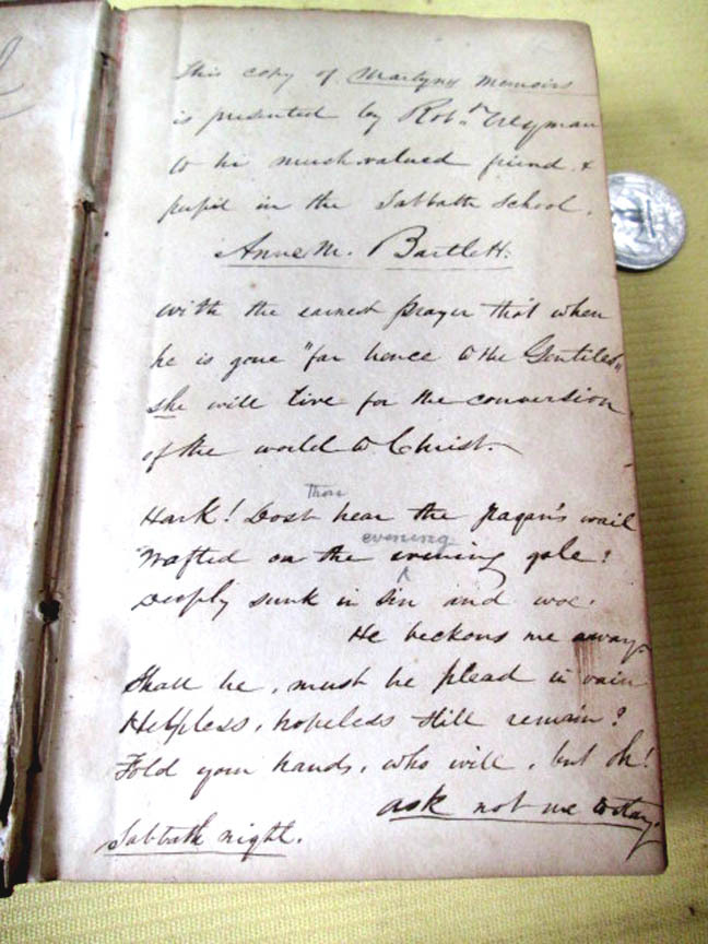 ENLARGED PICTURES!! Please scroll ALL the way down to view LARGER images. SML86. From 10th London Edition, No Date, (First half of the 19th century.) Pub. American Tract Society, New York. 24mo. Full calf leather. Front hinge, cracked. Spine label missing. Tight, clean text. Frontispiece portrait. Very Good - condition. Please do not hesitate to e-mail with any questions. As Always, Satisfaction Guaranteed! PAYMENT: PayPal, because eBay requires sellers to list electronic payments exclusively. I expect to receive payment within 10 days, unless we have made other arrangements. MEDIA MAIL: The majority of my books are sent Media Mail to U.S. customers. I add $1.00 for shipping materials, etc. (The shipping price that you see at the top of the page includes the handling fee.) PRIORITY MAIL: I will send both Media cost and Priority cost with invoice, on books which seem to warrant Priority service or when buyer requests it. I'm glad to combine multiple purchases in order to minimize shipping costs. I WILL SHIP INTERNATIONALLY, and I try to be as economical as possible with the shipping costs. Whenever a book will fit comfortably in a Priority Flat Rate Envelope, I'll send it that way. RETURN POLICY: Satisfaction Guaranteed! Payment I accept the following forms of payment: PayPal Shipping & Handling I'm glad to combine multiple purchases for less expensive shipping costs. US Shipping $4.00 USPS Media Mail® International Shipping $32.00 USPS Priority Mail International FREE scheduling, supersized images and templates. Get Vendio Sales Manager. FREE scheduling, supersized images and templates. Get Vendio Sales Manager. Over 100,000,000 served. Get FREE counters from Vendio today! On Mar-09-17 at 16:31:41 PST, seller added the following information: Track Page Views With Auctiva's FREE Counter