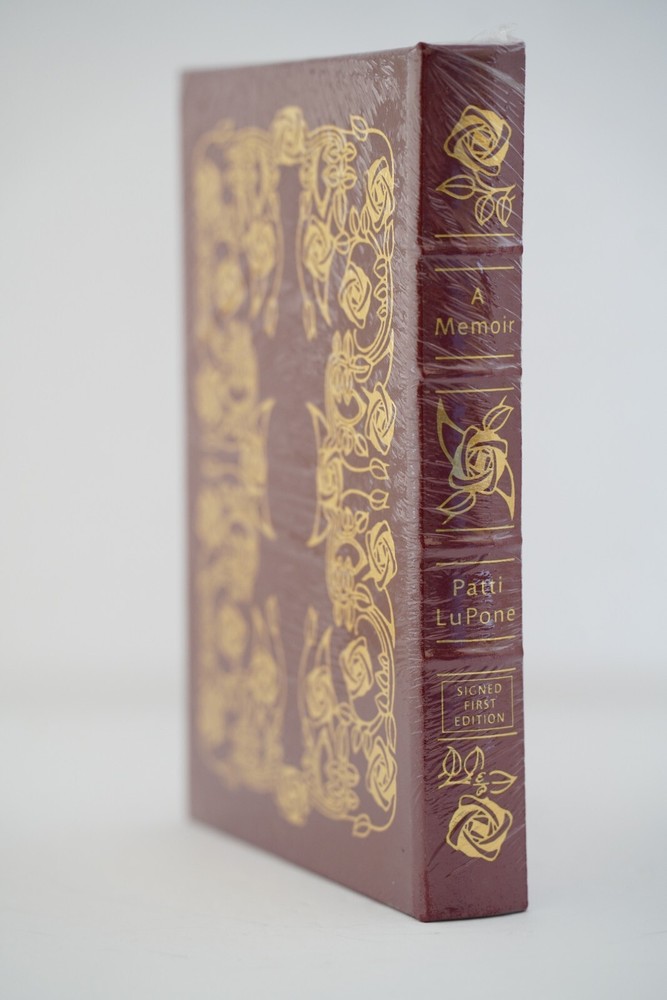 A Memoir SIGNED Patti LuPone SIGNED Easton Press FIRST EDITION Book features: Easton Press Full Genuine Leather Hubbed Spine Accented With 22 kt. Real Gold Satin Ribbon Page Marker Distinctive Cover Design Gilded Page Edges to Protect Against Humidity High-Quality Acid - Free paper Smyth-Sewn Pages Silk-Moire End eaves Make sure to see my other auctions as I have dozens of Easton Press signed First editions!