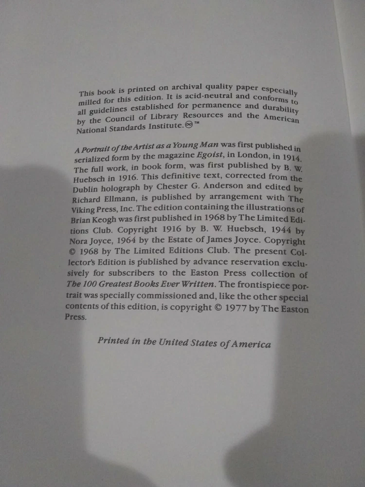 A Portrait of the Artist as a Young Man by James Joyce, Easton Press (1977). Shipped with USPS Media Mail.