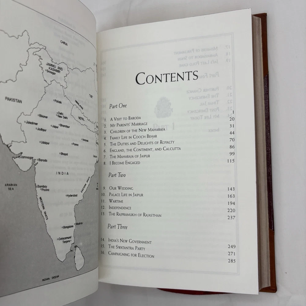 A Princess Remembers: the Memoirs of the Maharani of Jaipur, by Gayatri Devi, Leather Bound Hardcover book. Spine and corners are leather bound with Golden Leaf Printing on spine. See Photos