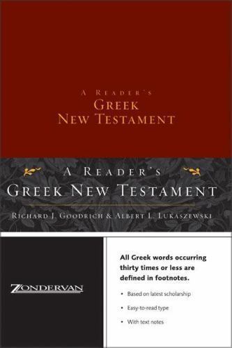 Your Online Bookstore presents ... A Reader's Greek New Testament ISBN: 0310248884 Author: Goodrich, Richard J.; Lukaszewski, Albert L. Publisher: Zondervan Release Date: 2004-03-30 Seller Category: -- Qty Available: 1 Condition: Used: Acceptable Sku: 0310248884-4-33751453 Notes: Don't forget to check out other great deals in our eBay Store!!