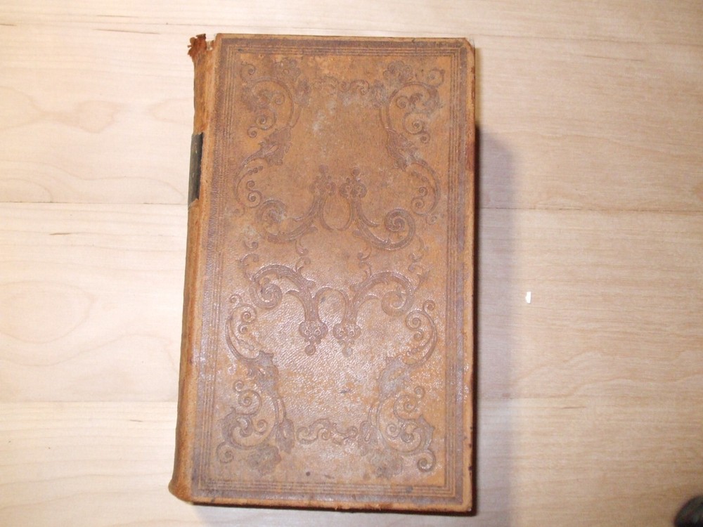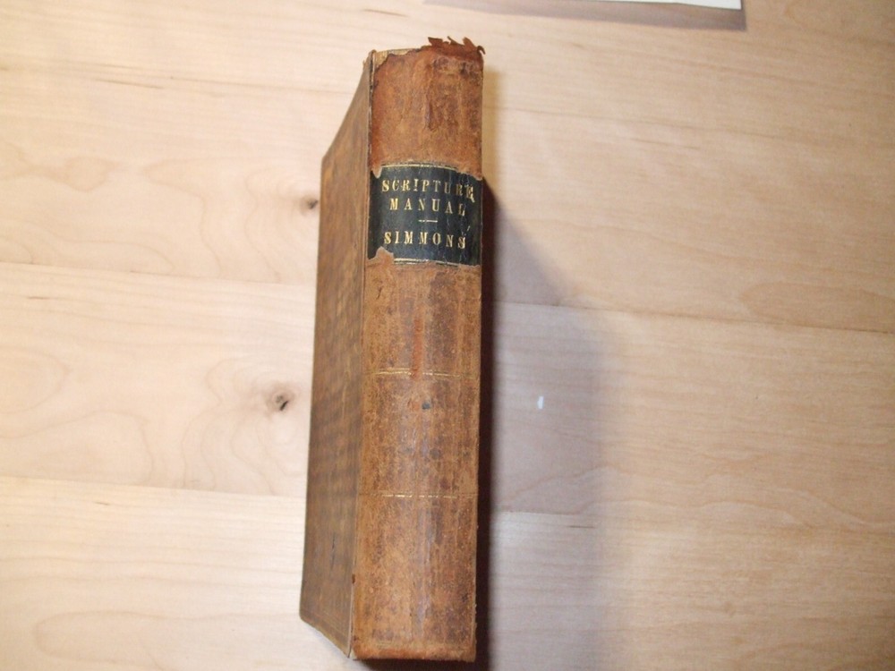 A Scripture Manual, 1852, good, wear at top of spine as shown, Hinges very good.. Interior has some minor tanning...