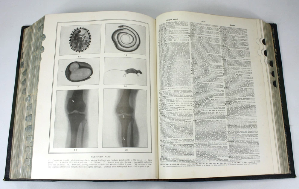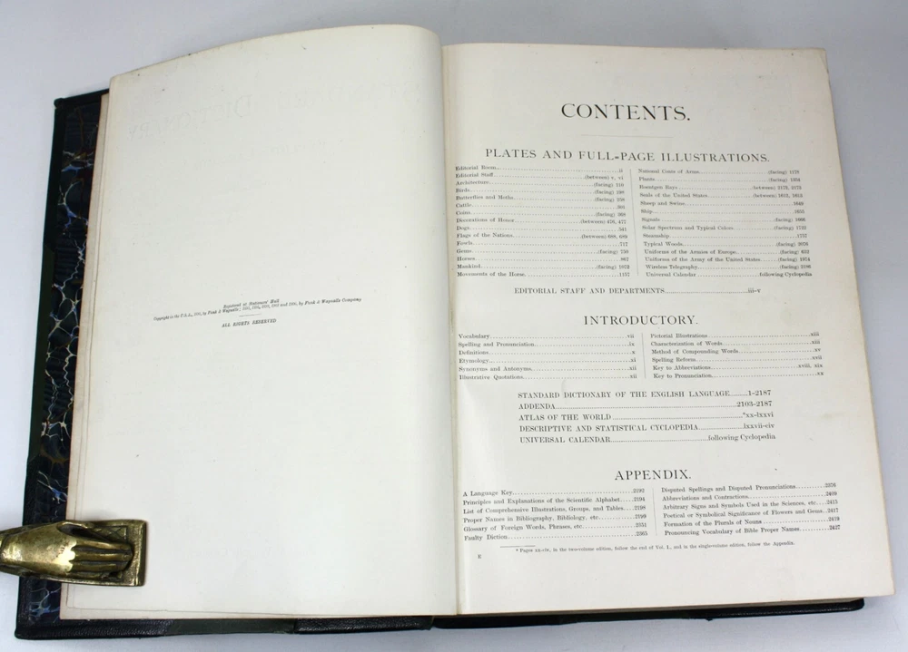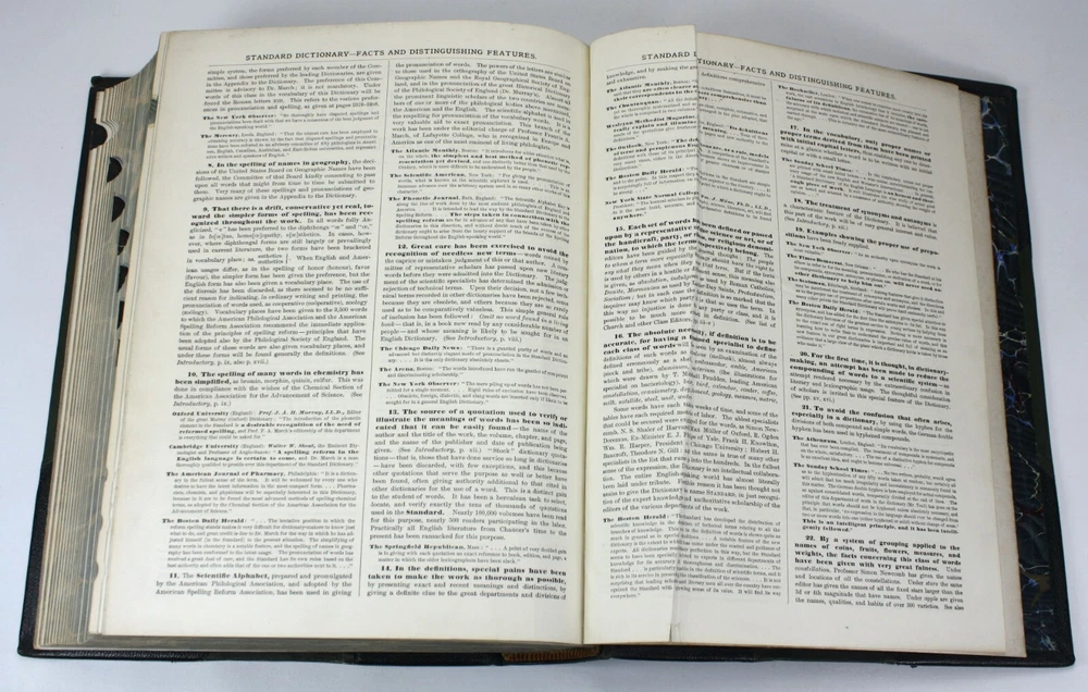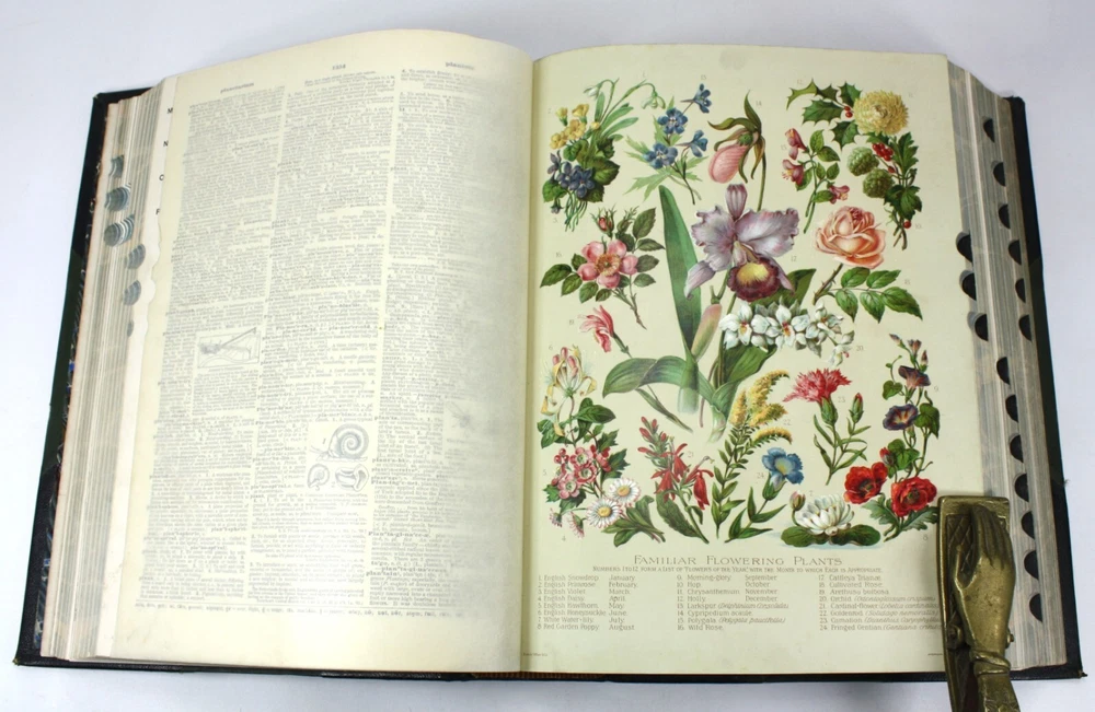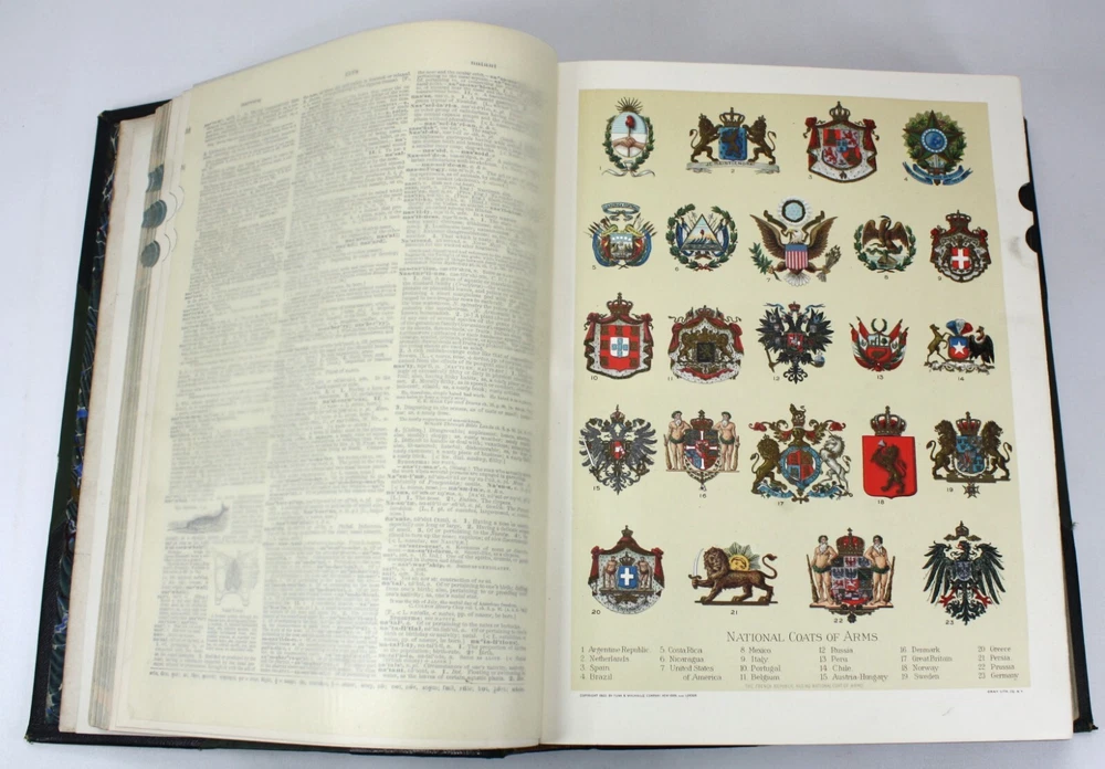 A Standard Dictionary of the English Language, upon original plans; designed to give, in complete and accurate statement, in the light of the most recent advances in knowledge, and in the readiest form for popular use, the orthography, pronunciation, meaning, and etymology of all the words and the meaning of idiomatic phrases in the speech and literature of the English-speaking peoples. Revised and Enlarged Edition. Prepared under the supervision of Isaac K. Funk, D.D., LL.D., Editor-in-Chief, by more than two hundred and fifty-seven specialists and other scholars. 2 volumes complete. Published by Funk & Wagnalls Company, London, 1907. A very good set of 2 very substantial volumes (complete). Hardbacks with leather spine and corners. Gilt decoration and raised bands. Some scuffing and bumping and wear to extremities, but all soundly bound. Marbled endpapers with green cloth strengthening to inner hinges (presumably as issued, given the weight of these books). Edges are marbled, and have index cutaways. Well illustrated throughout, with fine colour plates with tissue guards. A few spots to blank endpapers, but text is bright and clean throughout, and plates are impressive. Occasional page flaw - crease to final text page with small nibble at foot of page, and crease to final endpaper. Crease to title page of Vol. II. Text in English. Volume I (A-L); v + 1060pp + Plates and tissue guards+ lxxvi Colour Atlas Plates + lxxvii-clv Atlas text + 3pp 'The Universal Calendar' + 4pp 'Facts and Distinguishing Features'; Volume II (M-Z); Title + 1061-2441pp + Plates and tissue guards. PLEASE NOTE: FOR ORDERS OUTSIDE THE UK, PLEASE CHECK POSTAGE PRICE WITH US FIRST AS IT MAY BE OVER THE STANDARD EBAY QUOTED RATE - DUE TO THE WEIGHT OF THE BOOKS. Dimensions: Each volume approximately 315mm high x 245mm wide x 75-80mm deep. Approximate weight: 9kg (the set-unpacked). PLEASE NOTE: FOR ORDERS OUTSIDE THE UK, PLEASE CHECK POSTAGE PRICE WITH US FIRST AS IT MAY BE OVER THE STANDARD EBAY QUOTED RATE - DUE TO THE WEIGHT OF THE BOOKS. A Standard Dictionary of the English Language, upon original plans; designed to give, in complete and accurate statement, in the light of the most recent advances in knowledge, and in the readiest form for popular use, the orthography, pronunciation, meaning, and etymology of all the words and the meaning of idiomatic phrases in the speech and literature of the English-speaking peoples. Revised and Enlarged Edition. Hardbacks with leather spine and corners. Gilt decoration and raised bands. Some scuffing and bumping and wear to extremities, but all soundly bound. Marbled endpapers with green cloth strengthening to inner hinges (presumably as issued, given the weight of these books). Edges are marbled, and have index cutaways. Well illustrated throughout, with fine colour plates with tissue Recommended products Provided by An Etymological Dictionary of The Scottish Language, John Jamieson, 1818 1st ab View item A Catalogue of English Prose Fiction mainly of the eighteenth century J.C. Hardy View item A Translation of the Inferno of Dante Alighieri in English Verse Henry Boyd 1785 View item The Royal Horticultural Society Dictionary of Gardening, Fred J. Chittenden 1951 View item A Short History of the English People, J.R. Green, Illustrated Edition 1892-1894 View item The Ion of Euripides, with A Translation into English Verse, A.W. Verrall, 1890 View item A Biographical Dictionary of Eminent Scotsmen, Robert Chambers, 1855, Vol V Supp View item The Story of Insect Life, W Percival Westell, 1907 Robert Culley London. illust View item