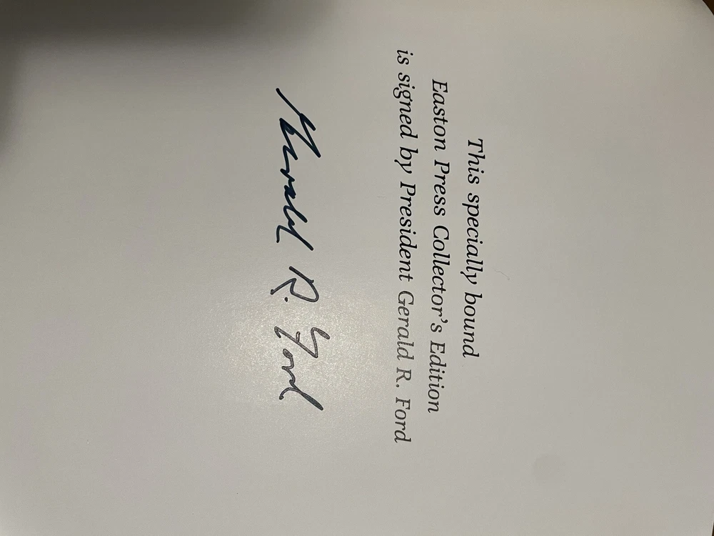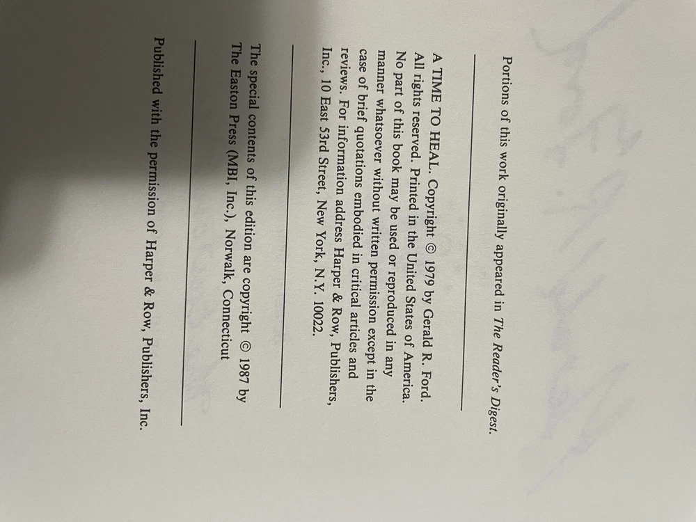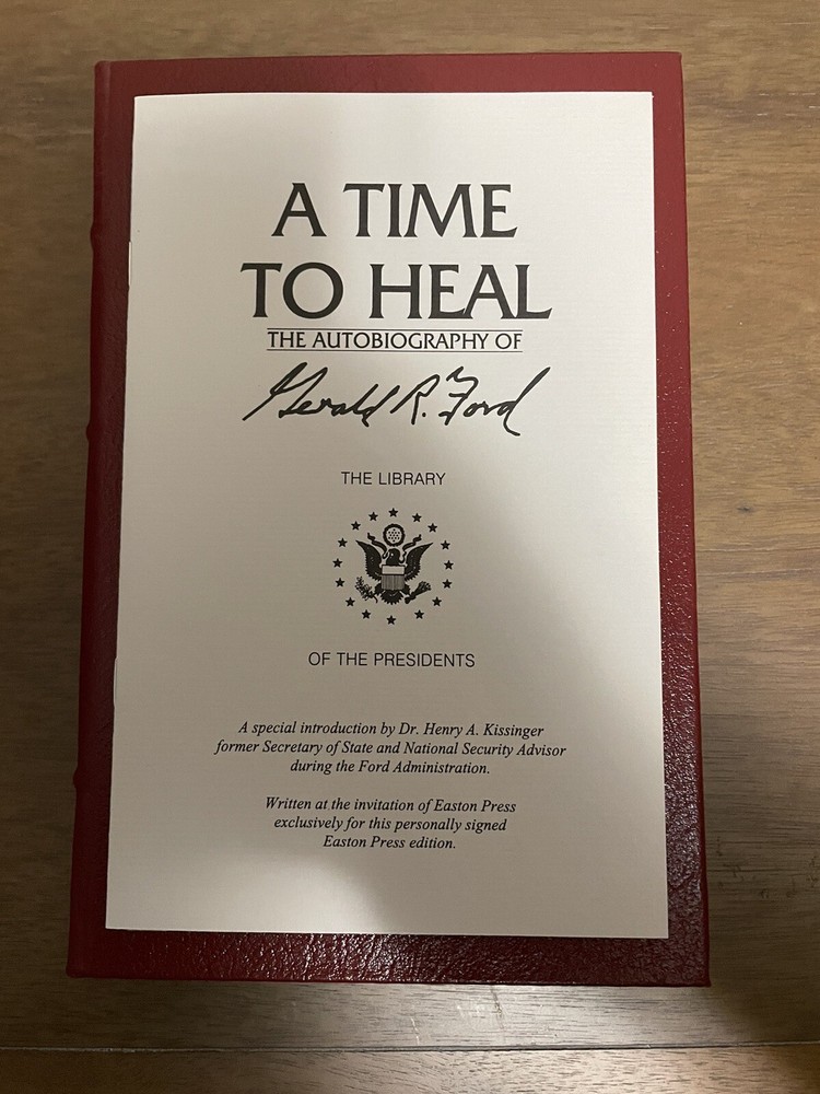 This is a signed and limited edition copy of "A TIME TO HEAL" by Gerald Ford, published by Easton Press in 1987. The book features luxurious leather binding and beautiful illustrations, making it a collector's item for anyone interested in political biographies. The book is in near mint condition and has been well-preserved over the years. It would make a great addition to any book collection and is a must-have for fans of Gerald Ford. Don't miss out on this special opportunity to own a piece of history! Book does have a signed bookplate. See picture.