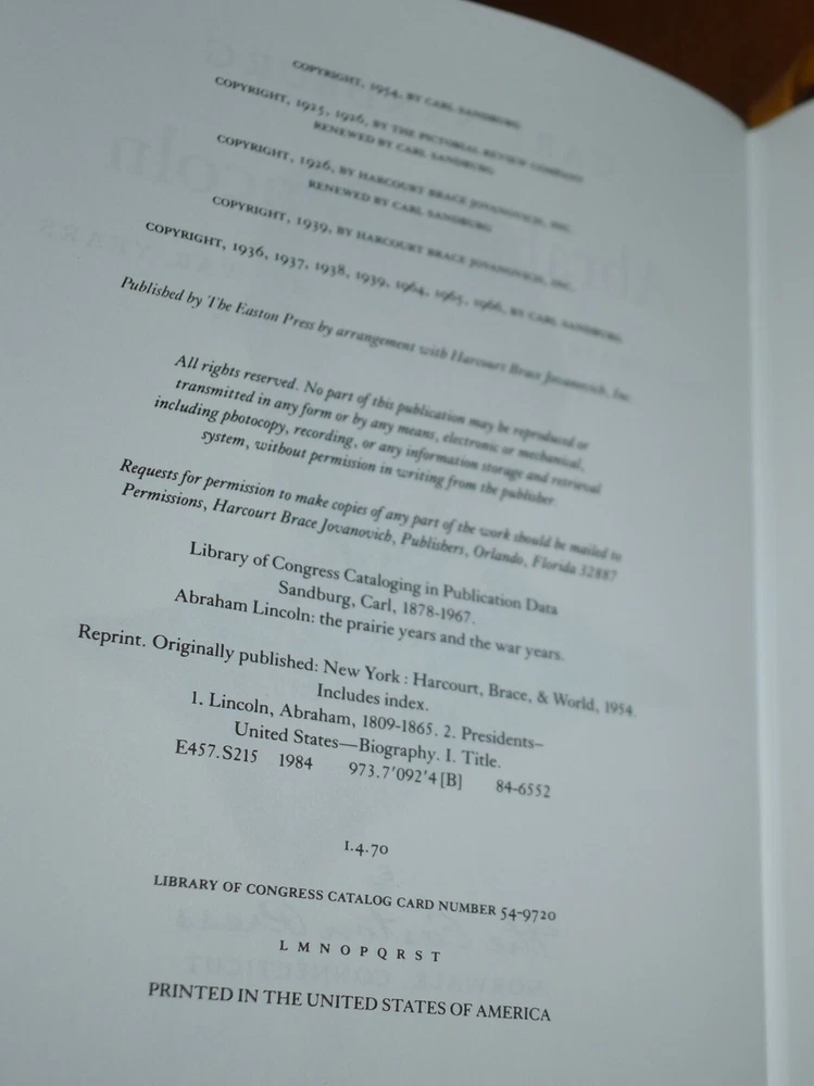 ABRAHAM LINCOLN Carl Sandburg 1984 Easton Press Library of Presidents In great condition, bought then placed on my bookshelf for decades. Please see my many photos. Check out my many other listings, m...