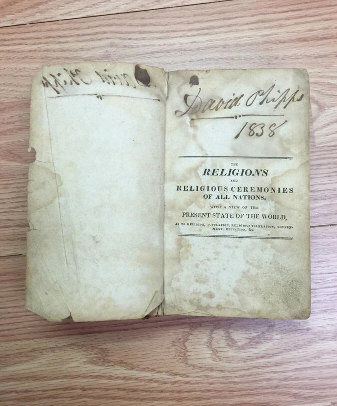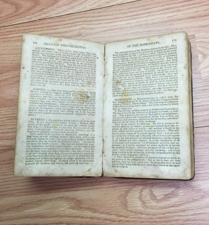 ALL RELIGIONS AND RELIGIOUS CEREMONIES Thomas Robbins 1825 Ecumenical Reference Item is in acceptable condition. Item has multiple creases and tares. The spine is intact and the tares seem to be predominantly at the front and back the inside seems to be complete.